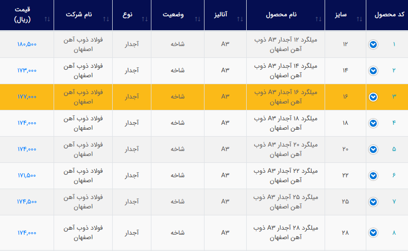 میلگرد ذوبی ۱۲—— ۱۴—— ۱۶—— ۱۸—— ۲۰—— ۲۲—— ۲۵—— ۰۳۱_۳۶۲۶۹۹۳۶_۳۷