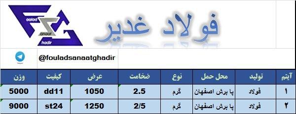 فولاد راد همدان : ۳۰ الی ۱۳۰ تومان افزایش میلگرد ۸ ۷۲۱۵ میلگرد ۱۰ ۷۱۴۵ میلگرد ۱۲ ۶۹۶۵ میلگرد ۱۴ الی ۲۲ ۶۹۱۵ میلگرد ۲۵ و ۲۸ ۶۹۴۵