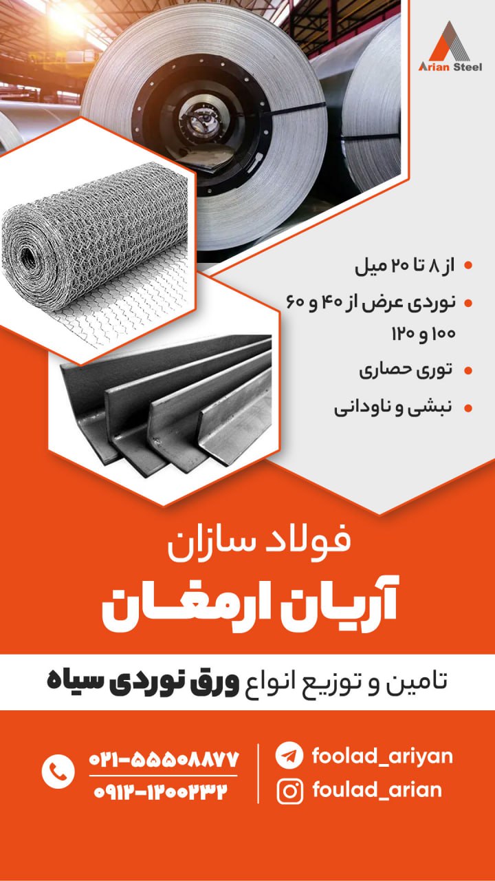 💠 #فولادسازان_آریان_ارمغان ✳️تامین و توزیع انواع ورق نوردی سیاه 🔸8 تا 20 میل 🔹از عرض 40 و 60 و 100 و 120 ✳️تامین توری حصاری ✳️ تامین نبشی ✳️تامین ناودانی #جهت_مشاهده_پروفایل_آریان_فولاد https://foolad24.com/profile/2552 #جهت_مشاهده_اعلام_موجودی_آریان_فولاد https://foolad24.com/profile/2552/inventory ☎️02155508877 📲09121200232 🌐 https://fouladarian.com/ 🆔 https://t.me/foolad_ariyan 🌐https://www.instagram.com/foulad_arian/