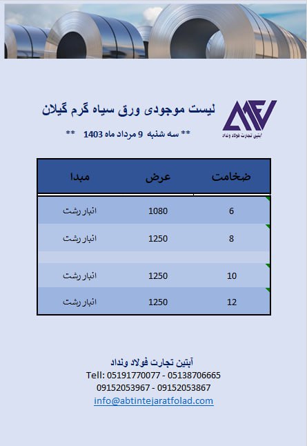 اعلام موجودی ورق گرم (سیاه)آجدار فابریک
