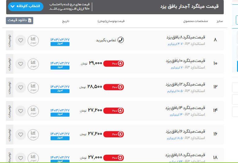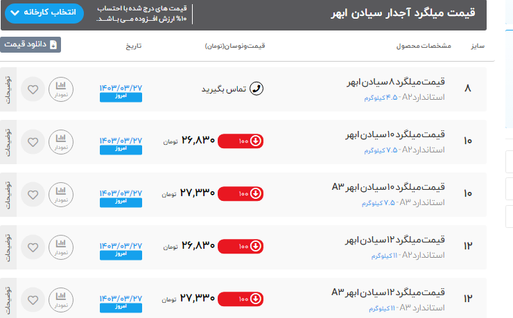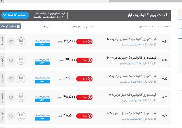 اعلام موجودی ورق گالوانیزه