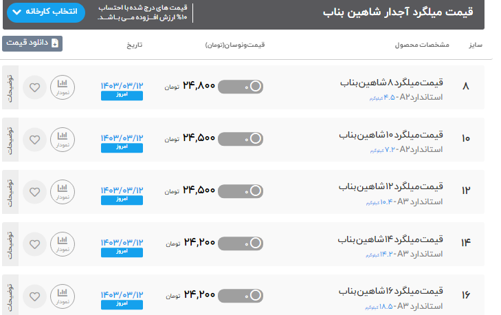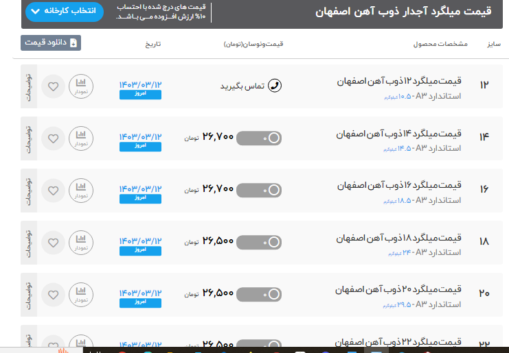 تیرآهن 14 / 16 / 18 ظرفیت انبار اصفهان آماده بارگیری تسویه یک هفته 296.000 ریال تیرآهن 24 / 27 / 30 قیمت تماس تلفن 000 280 45 داخلی 210/211 پاتریس 88 59 106 - 0994 تیرآهن 14/ 16 / 18 / 24 / 27 / 30 تسویه 29 / 3 / 1403 قیمت تماس فقط ظرفیت انبار اصفهان