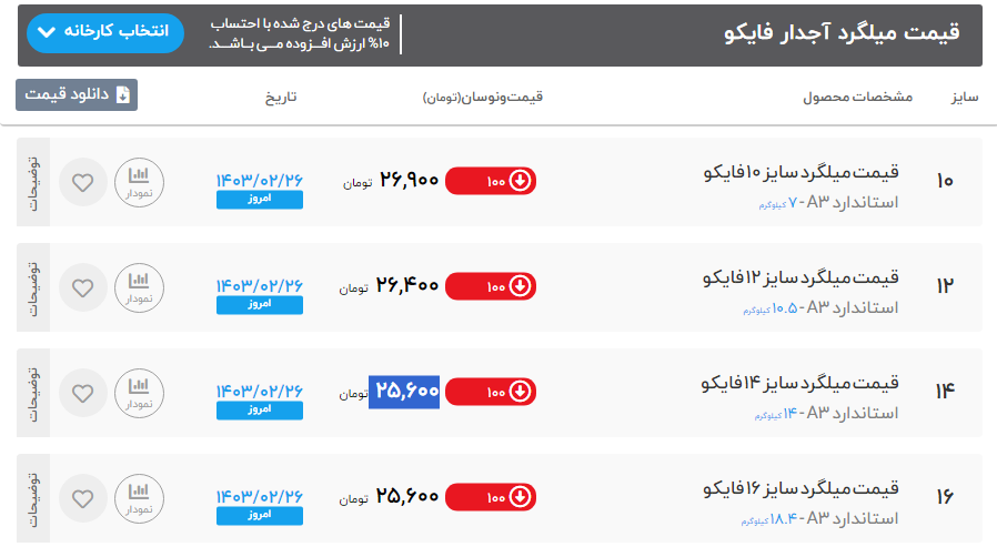 🟢 قیمت روز میلگرد آجدار ذوب آهن #میلگرد_ذوب_آهن | تاریخ بروزرسانی: ۱۴۰۳/۰۲/۲۶ میلگرد 12 ذوب آهن اصفهان | 26,240 تومان ------------------------------ میلگرد 14 ذوب آهن اصفهان | 24,180 تومان ------------------------------ میلگرد 16 ذوب آهن اصفهان | 24,180 تومان ------------------------------ میلگرد 18 ذوب آهن اصفهان | 24,000 تومان ------------------------------ میلگرد 22 ذوب آهن اصفهان | 24,000 تومان ☎️ 03191091009 🔵🟠 @moshaveranahan