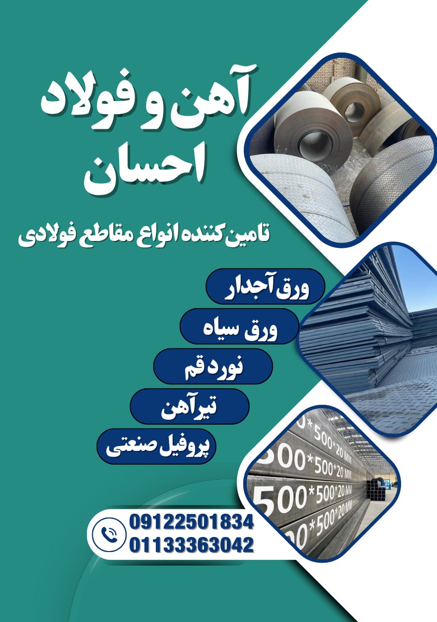 #آهن_فولاد_احسان ✨تامین کننده انواع مقاطع فولادی : ✅ورق آجدار ✅ورق سیاه ✅نورد قم ✅تیرآهن ✅پروفیل صنعتی ارتباط باما : ☎️01133363042 📞09122501834 📞09032011834 تلگرام https://t.me/ehsanahan اینستاگرام https://instagram.com/bazargani.ahan.ehsan2 🍃مشاهده پروفیل آهن و فولاد احسان https://foolad24.com/profile/14793