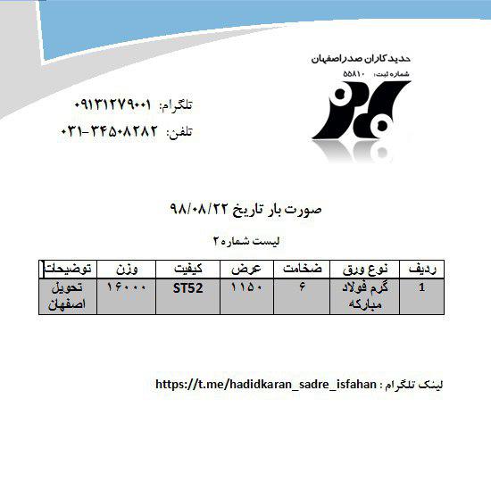 50×1000 50×1250 انبار شهرکرد درجه یک st12 70×1500 73×1500 st12 انبار اصفهان درجه یک 70×1500×3000 st14 2/6×1095 درجه ۲
