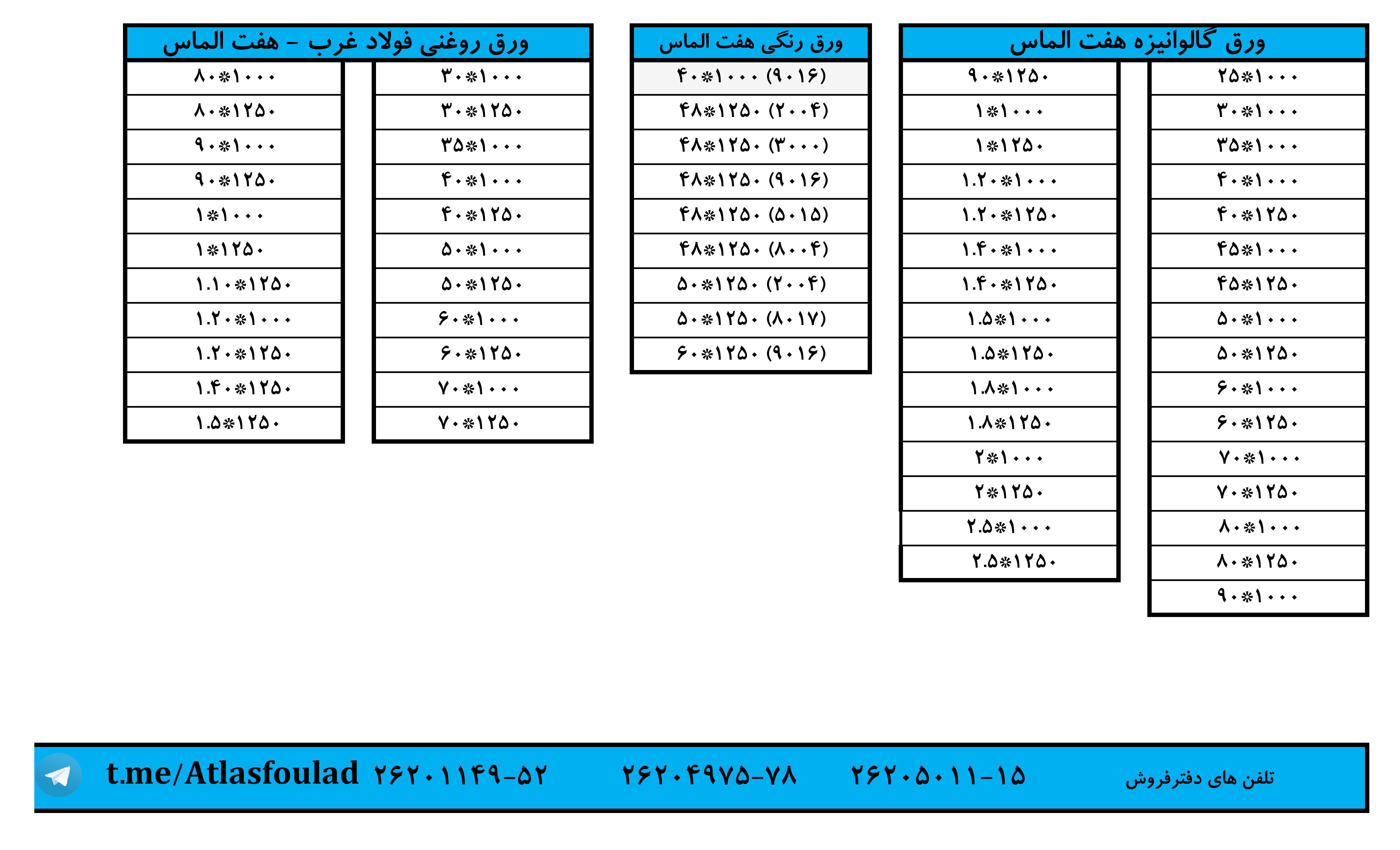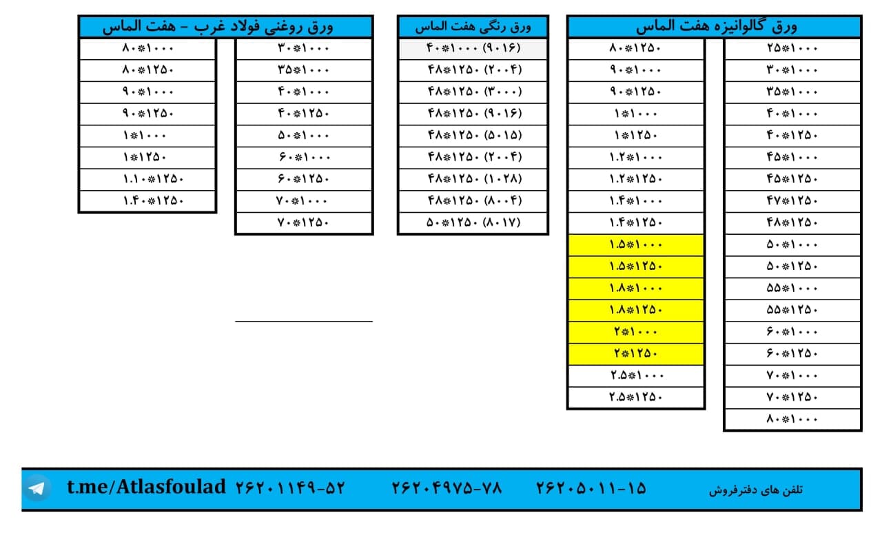 #اطلس_فولاد 25*1000 80*1250 30*1000 90*1000 35*1000 90*1250 40*1000 1*1000 40*1250 1*1250 45*1000 1.2*10 ...