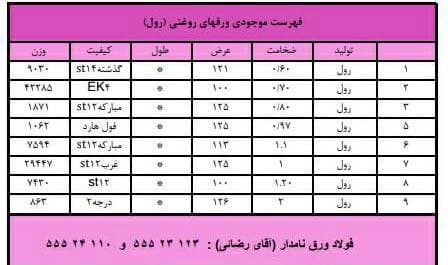 ورق روغنى فولاد مباركه ضخامت٦٠ عرض١٢٥ كيفيتst12 🚚انبار تهران/رول ٠٩١٢٧٦٦٠٦٨١