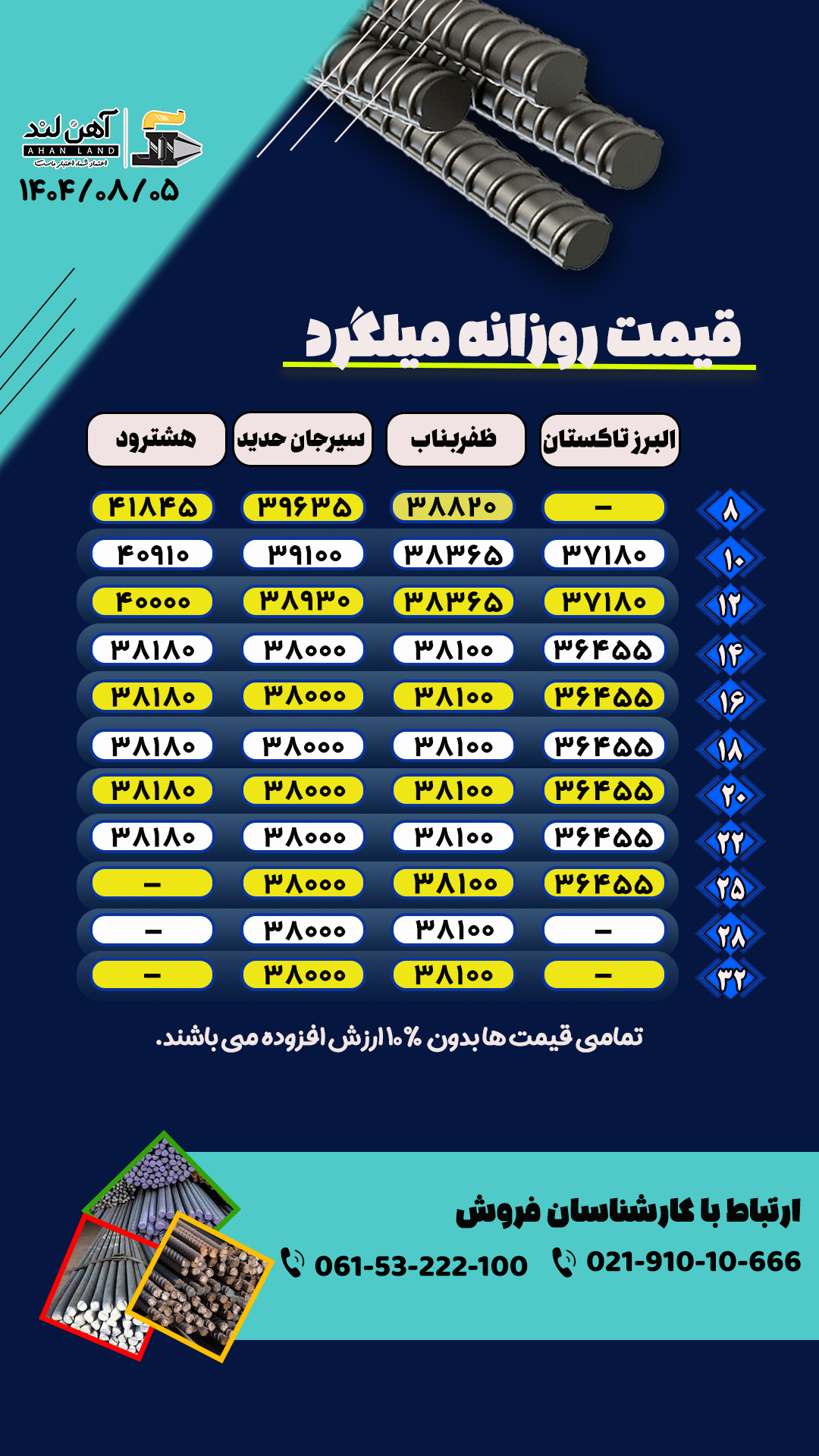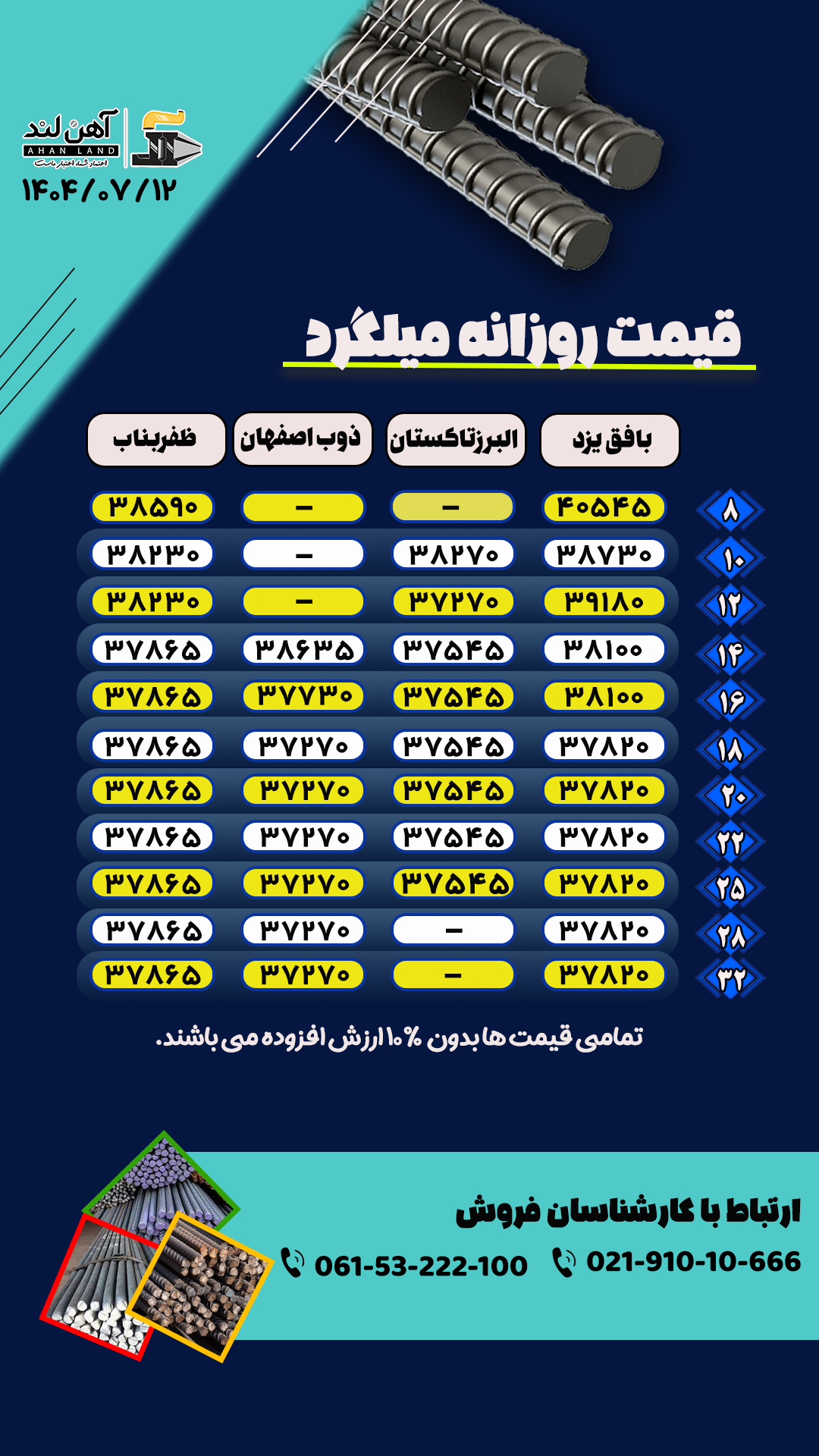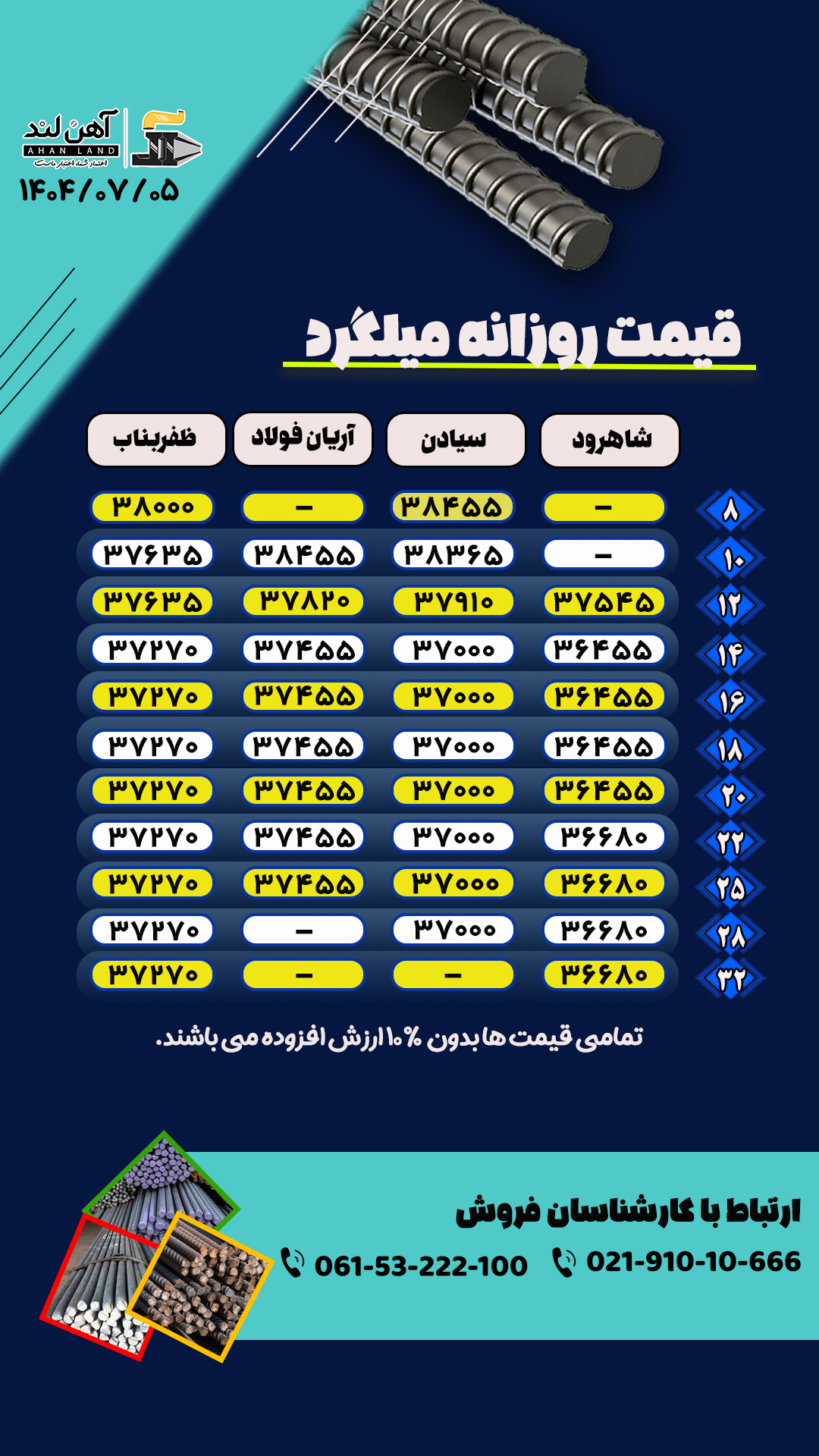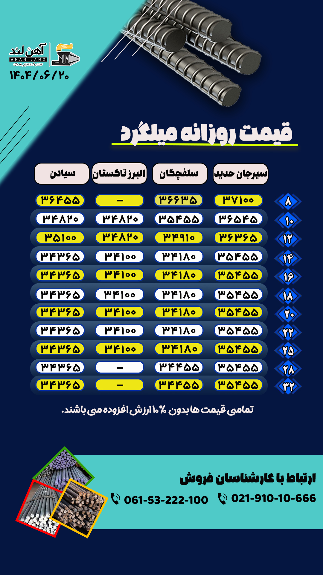 میلگرد پنجشنبه 1404/06/20 ✅ جهت خرید، مشاوره و ارتباط با کارشناسان فروش: https://zil.ink/ahanland ☎️ 02191010666 ☎️ 06153222100