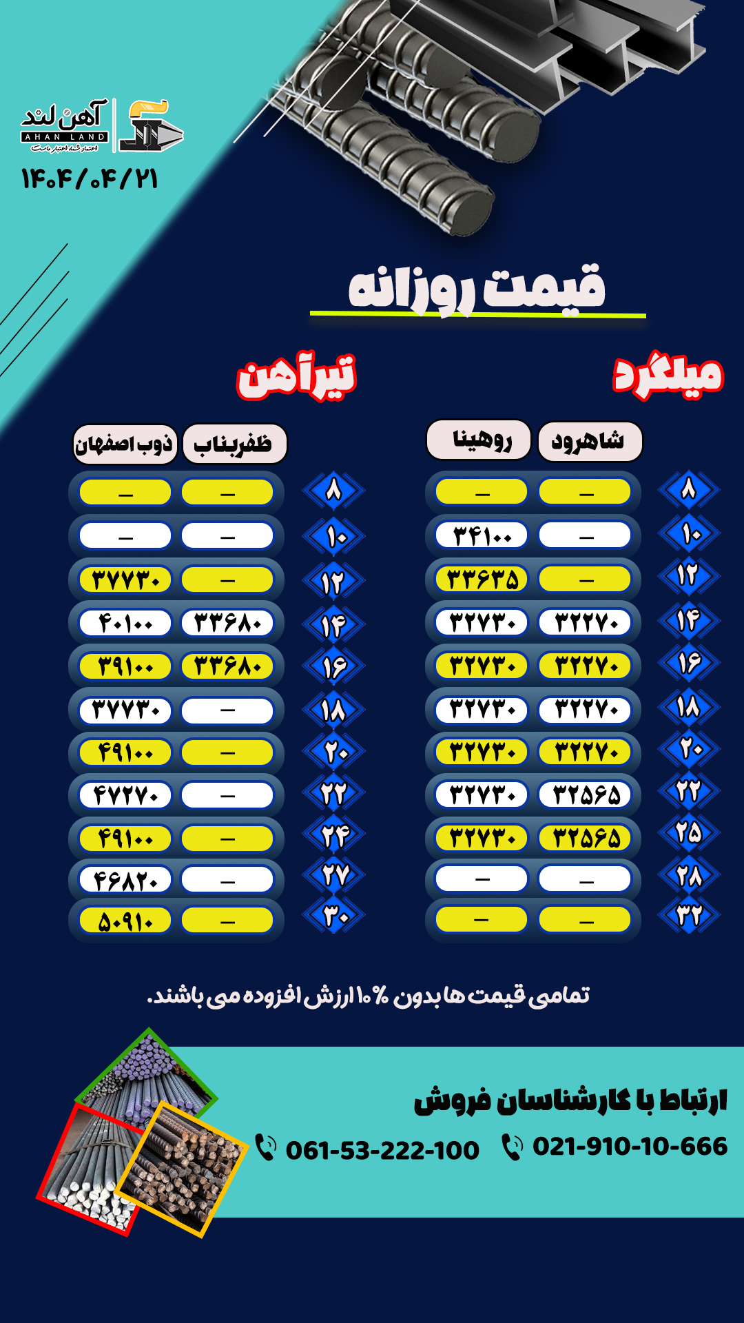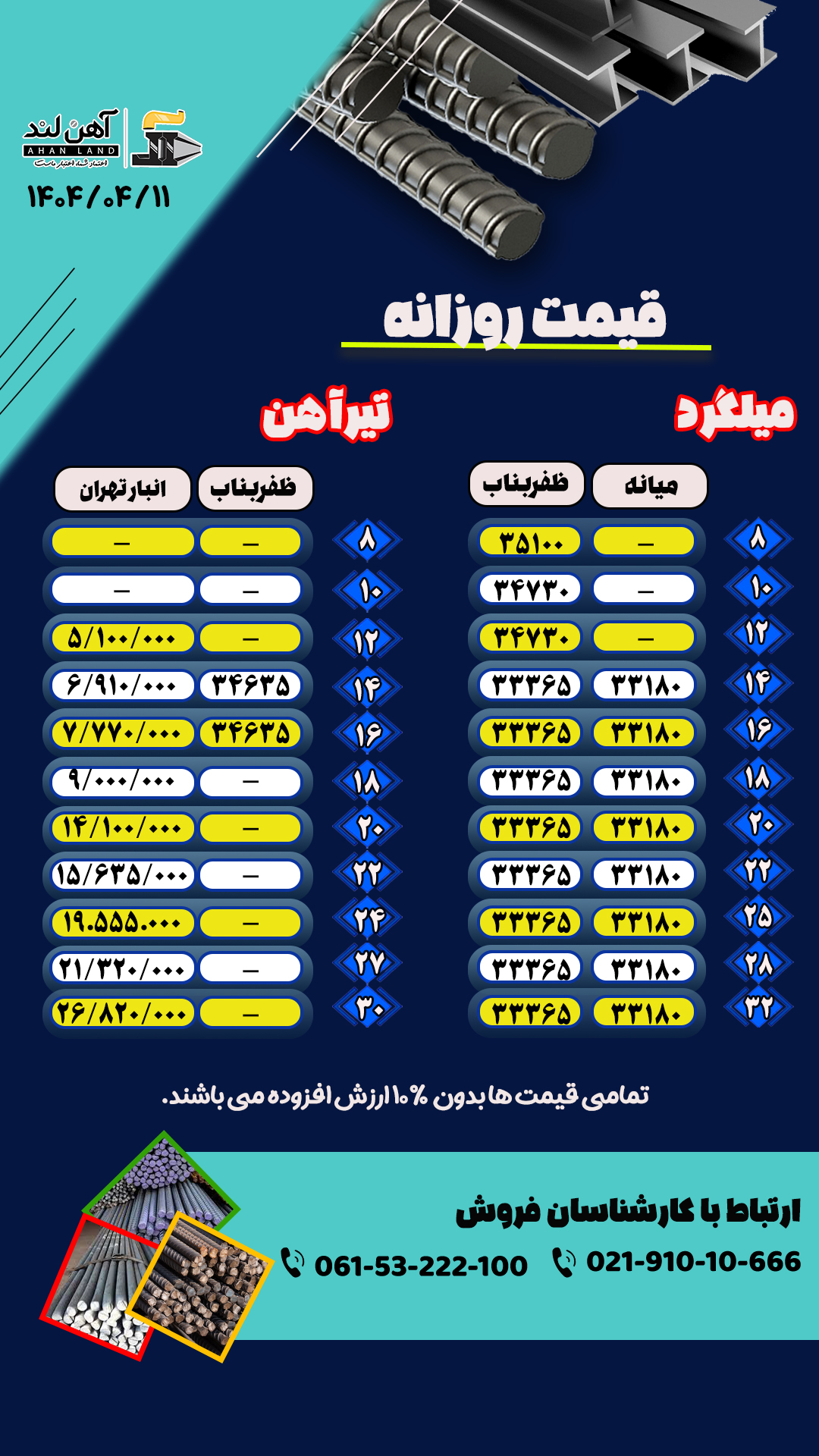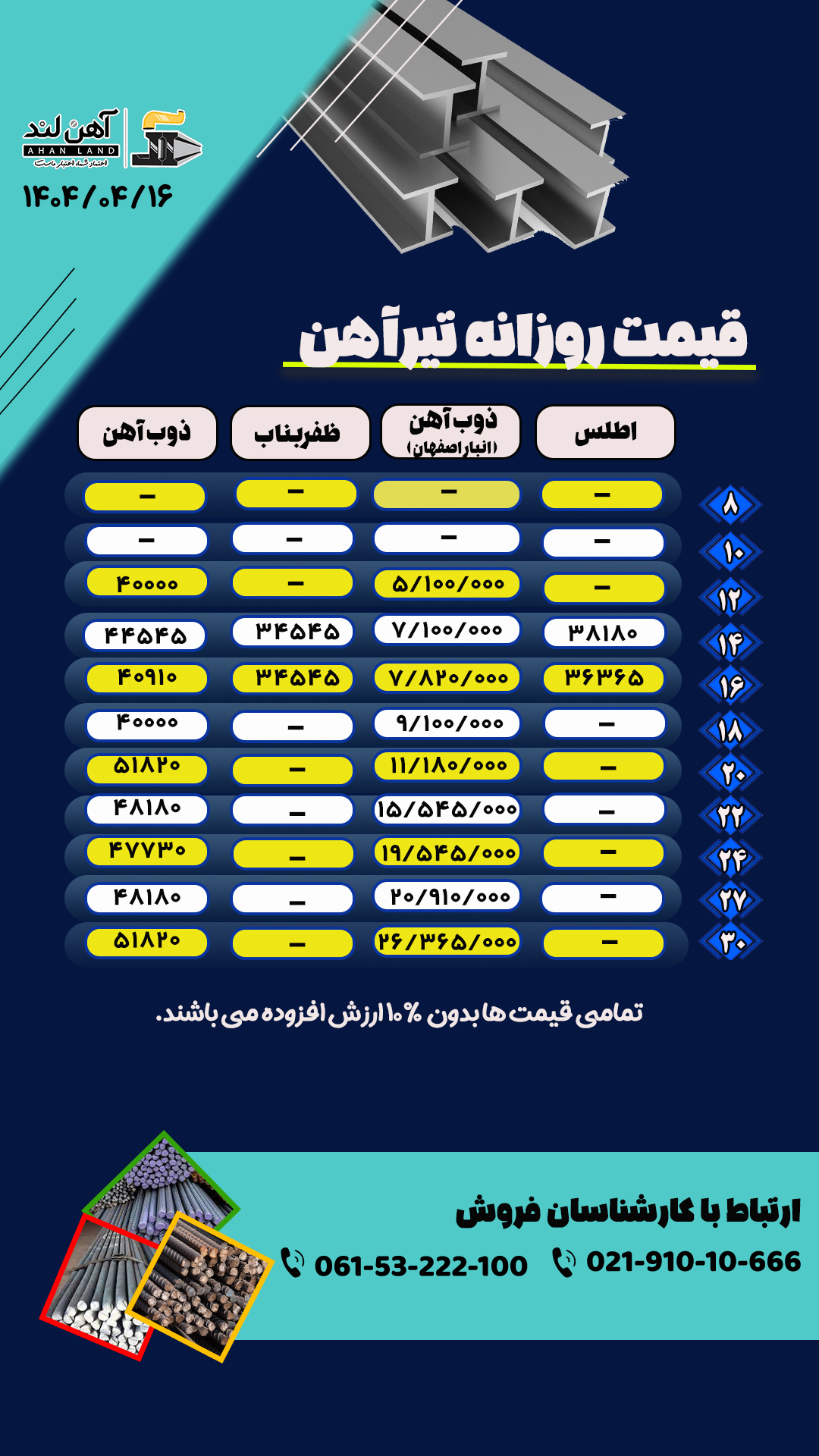 تاریخ: 1404/05/02 تیرآهن ✅ جهت خرید، مشاوره و ارتباط با کارشناسان فروش: https://zil.ink/ahanland ☎️ 02191010666 ☎️ 06153222100
