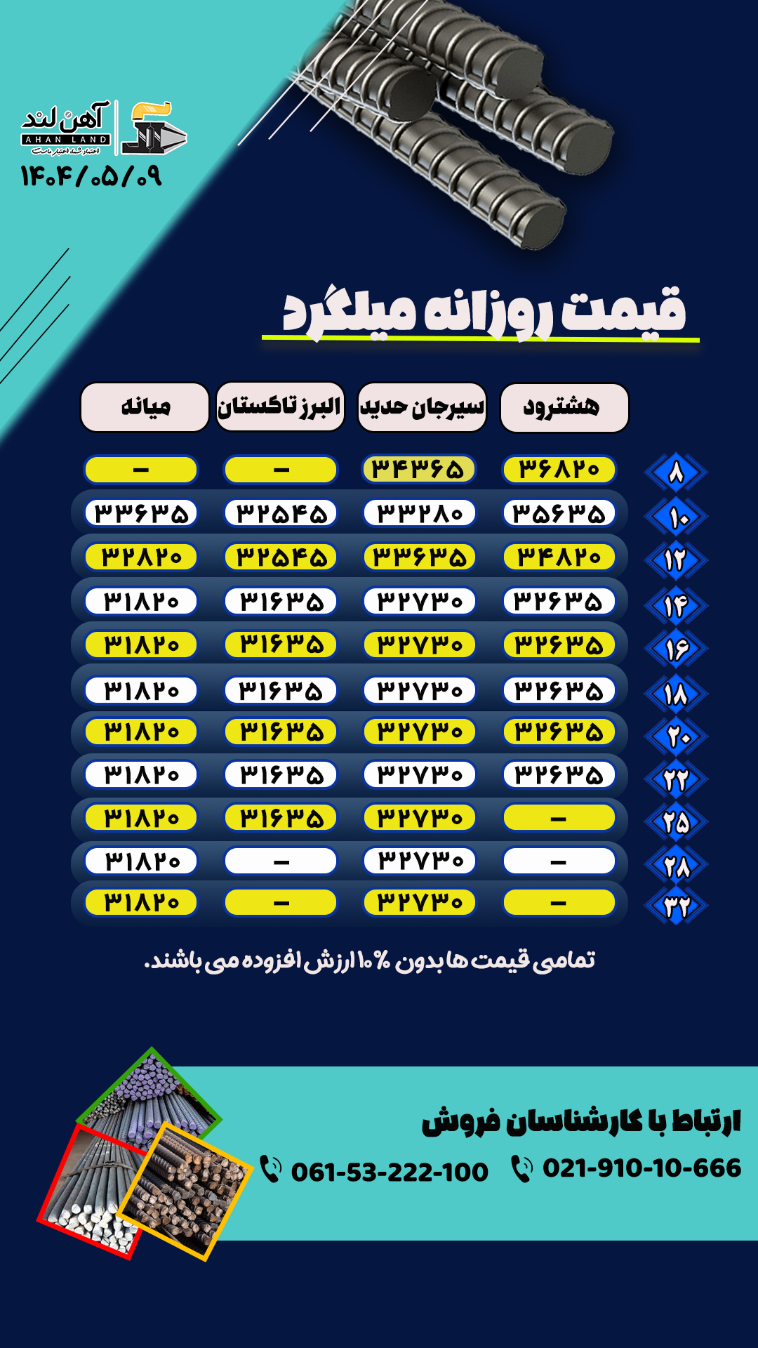 🗓دوشنبه 1403/11/01 🚛بارگیری #کارخانه 🔺افزایش میلگرد 14↔️ 30100 تومان میلگرد 25↔️ 30100 تومان ☎️ 02191010666 ☎️ 06153222100