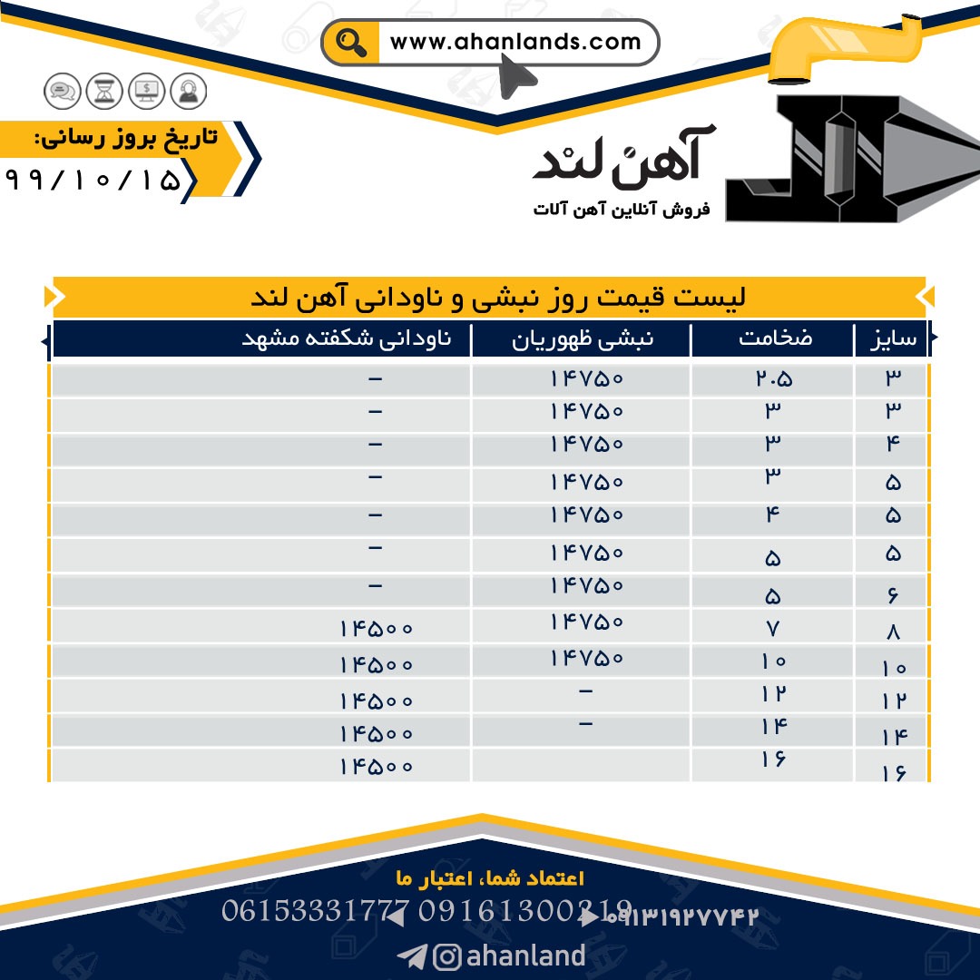 🔴آهن لند🔴 ⭕لیست قیمت انواع محصولات فولادی در تاریخ: 1399/10/15 برای مشاهده آنلاین قیمت انواع مقاطع فولادی به وب سایت WWW.AHANLANDS.COM مراجعه فرمایید. ⚜اعتماد ...