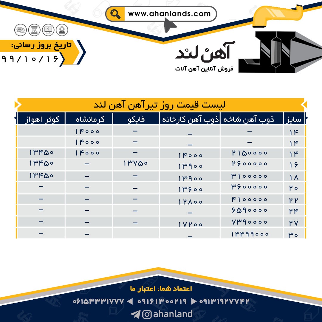 🔴آهن لند🔴 ⭕لیست قیمت انواع محصولات فولادی در تاریخ: 1399/10/16 برای مشاهده آنلاین قیمت انواع مقاطع فولادی به وب سایت WWW.AHANLANDS.COM مراجعه فرمایید. ⚜اعتماد ...