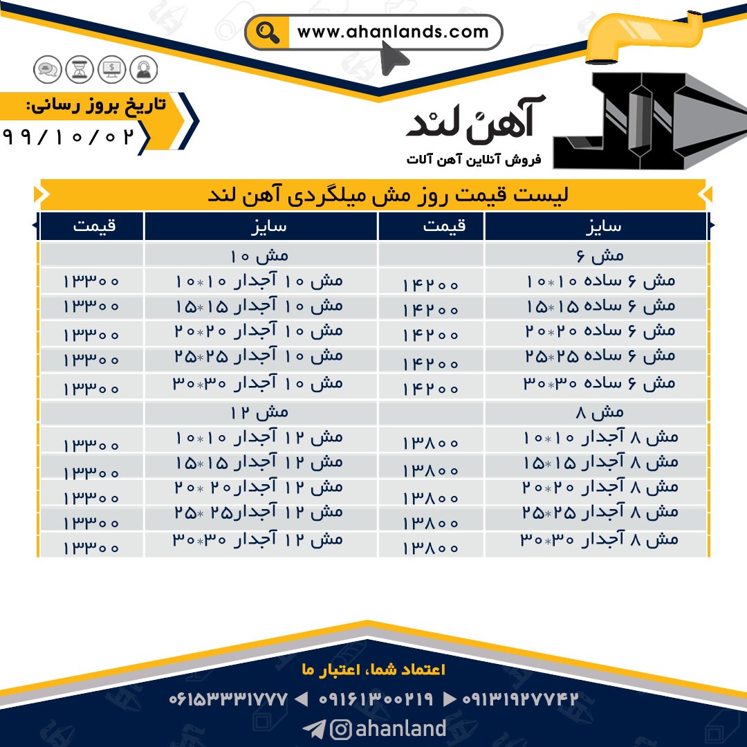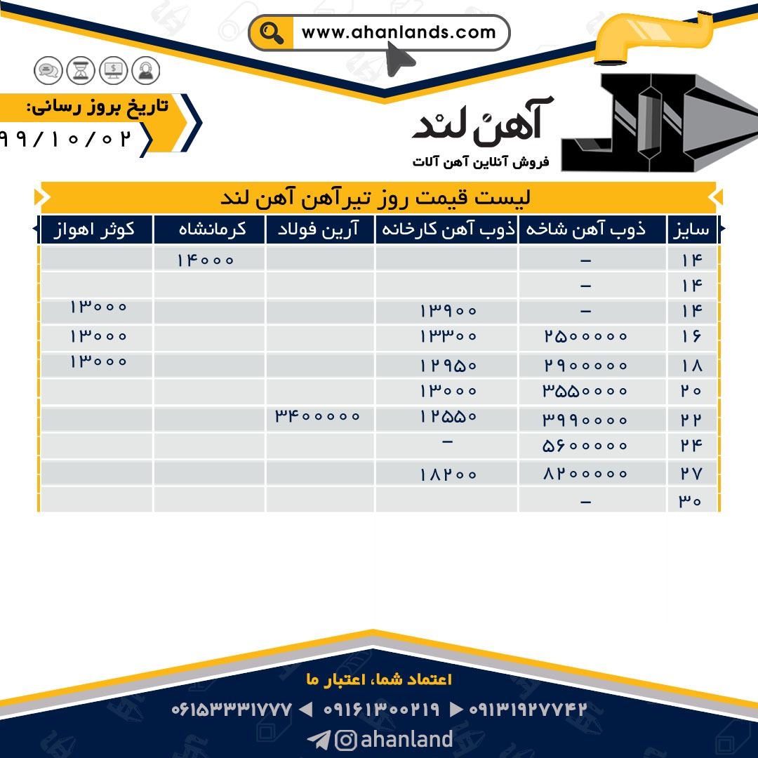 🔴آهن لند🔴 لیست قیمت انواع محصولات فولادی در تاریخ: 1399/10/02 ⭕برای مشاهده آنلاین قیمت انواع مقاطع فولادی به وب سایت ما: WWW.AHANLANDS.COM مراجعه فرمایید. ⚜ا ...