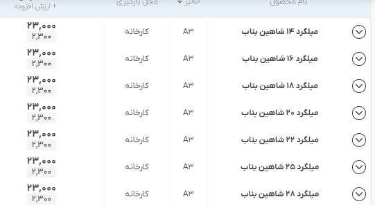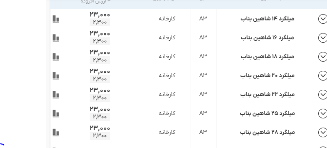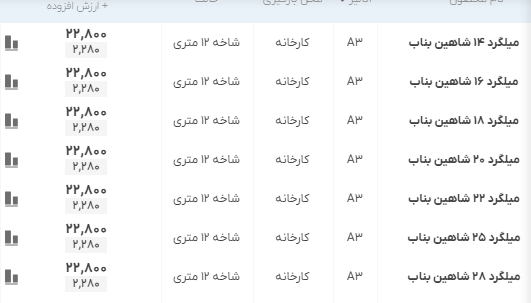 اعلام موجودی مرکز آهن میلگرد شاهین بناب