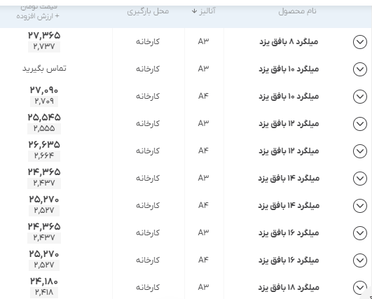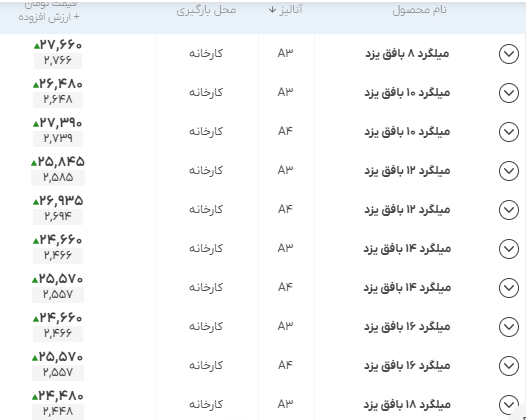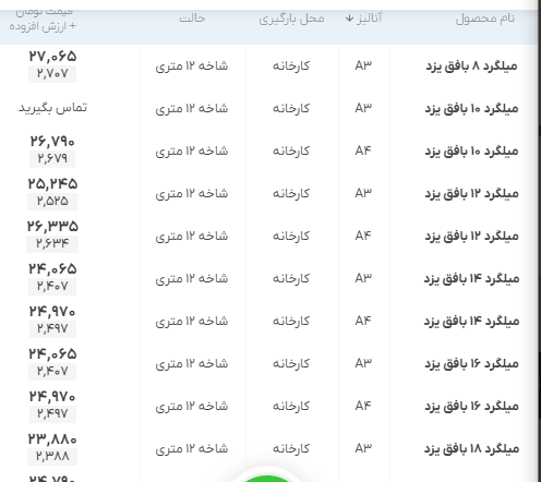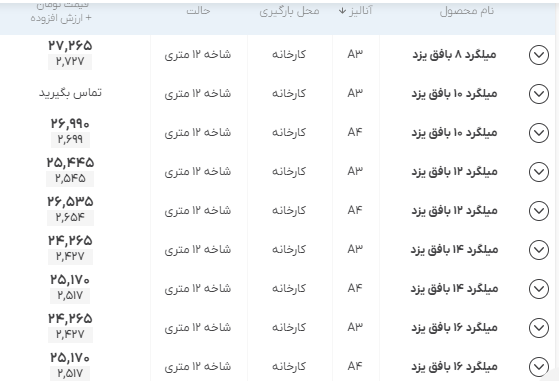 اعلام موجودی مرکز آهن میلگرد بافق