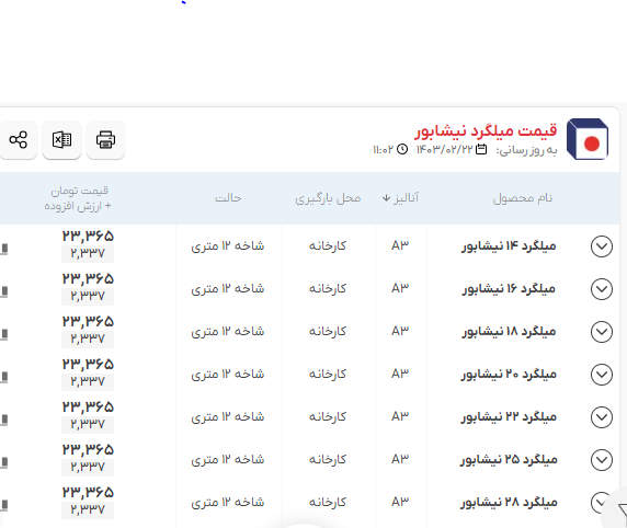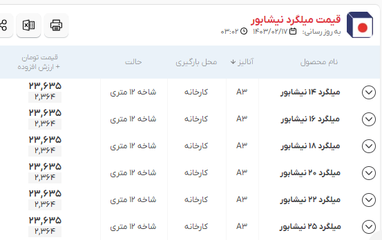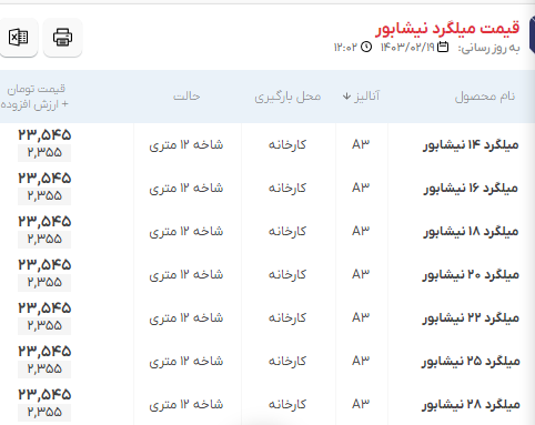 اعلام موجودی مرکز آهن میلگرد نیشابور