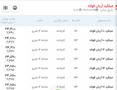 اعلام موجودی مرکزآهن میلگرد آریان فولاد