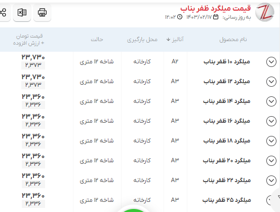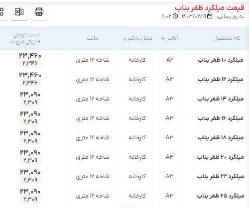 اعلام موجودی مرکز آهن میلگرد ظفر بناب