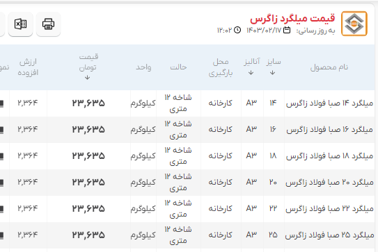 اعلام موجودی مرکز آهن میلگرد زاگرس
