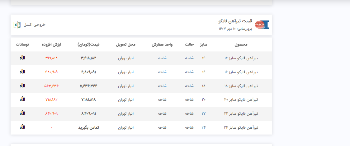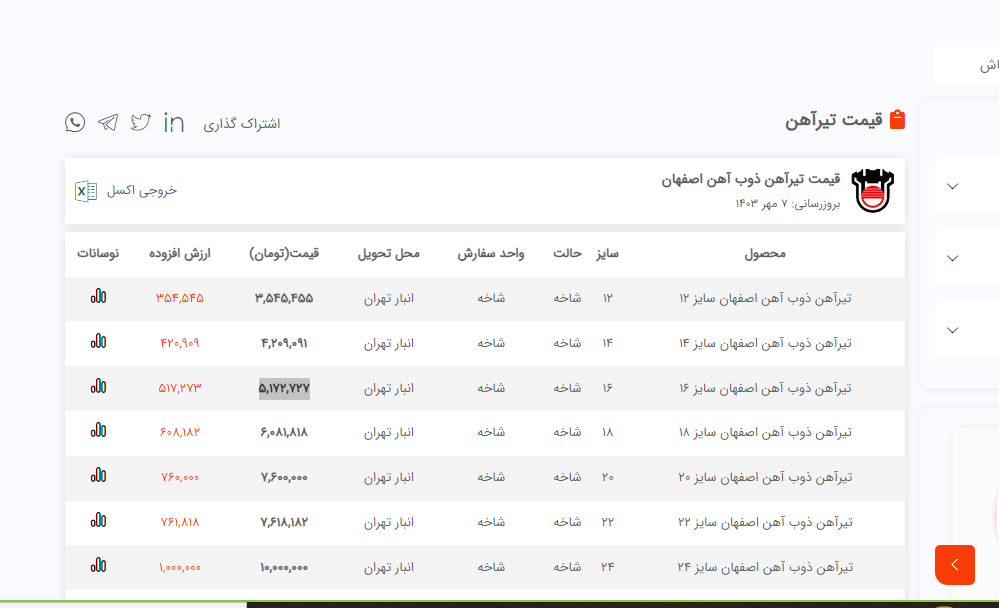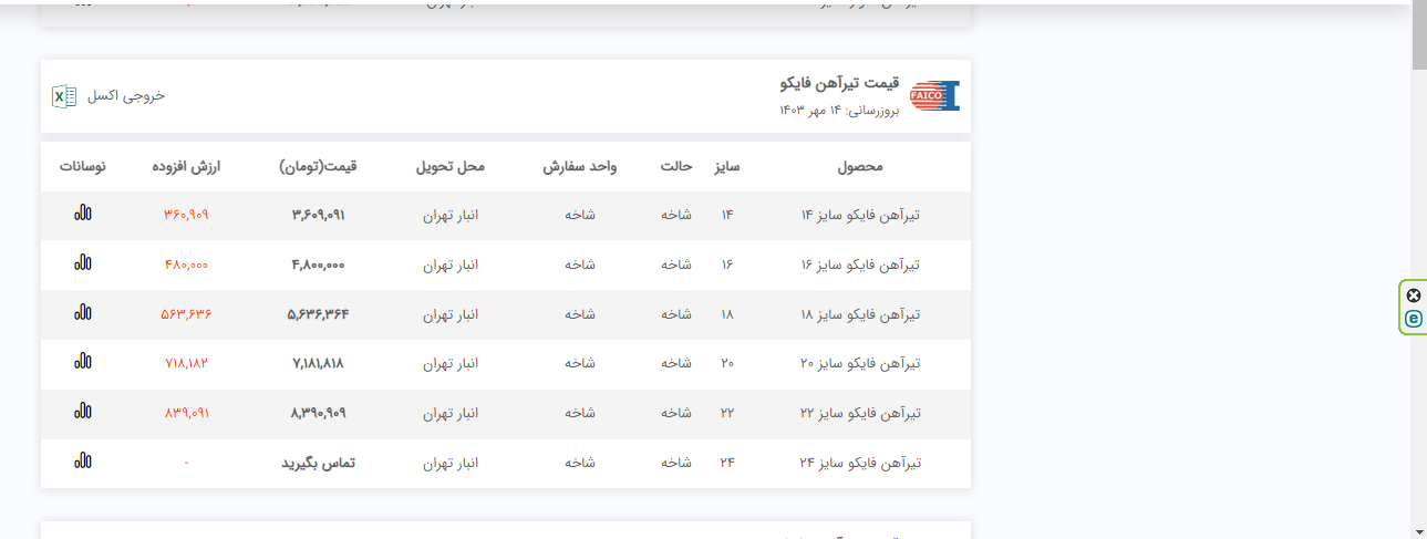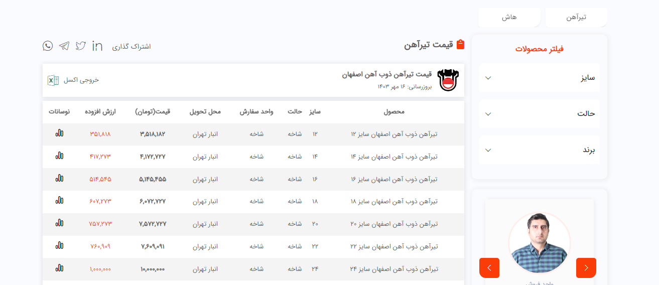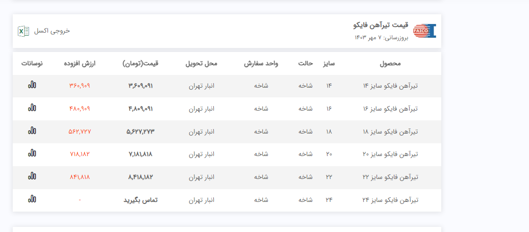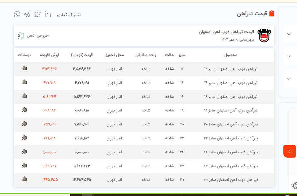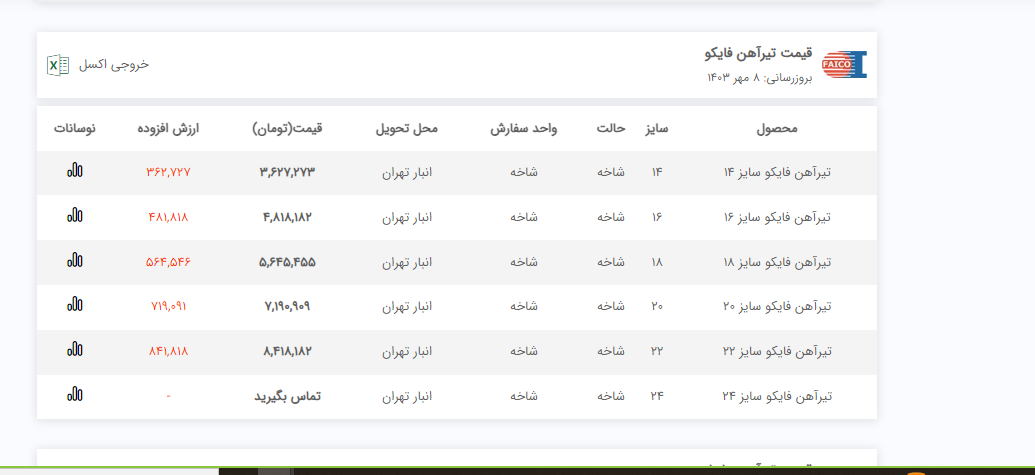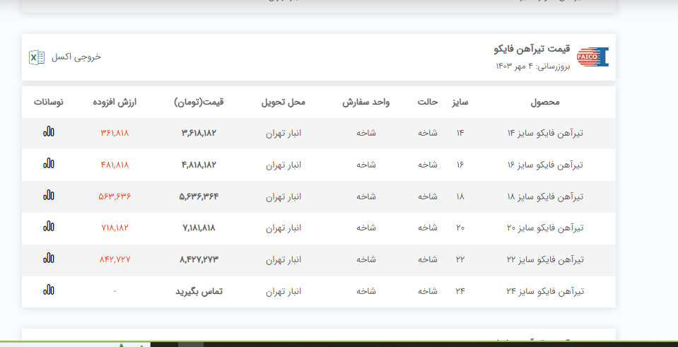 اعلام موجودی تیرآهن