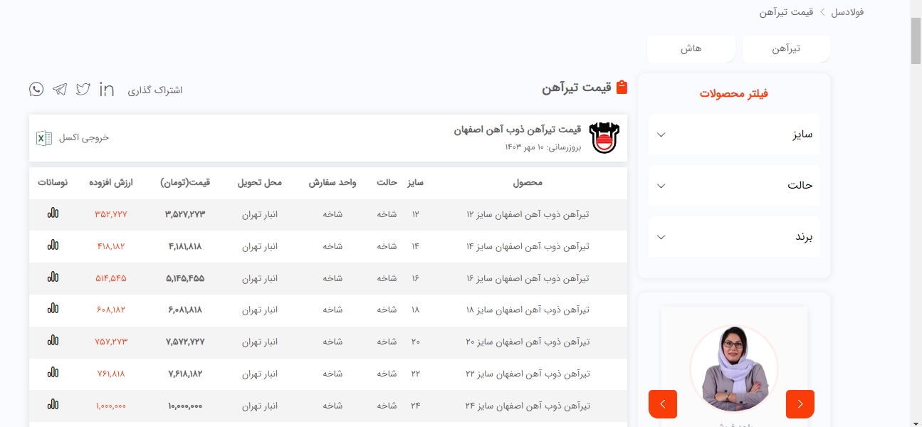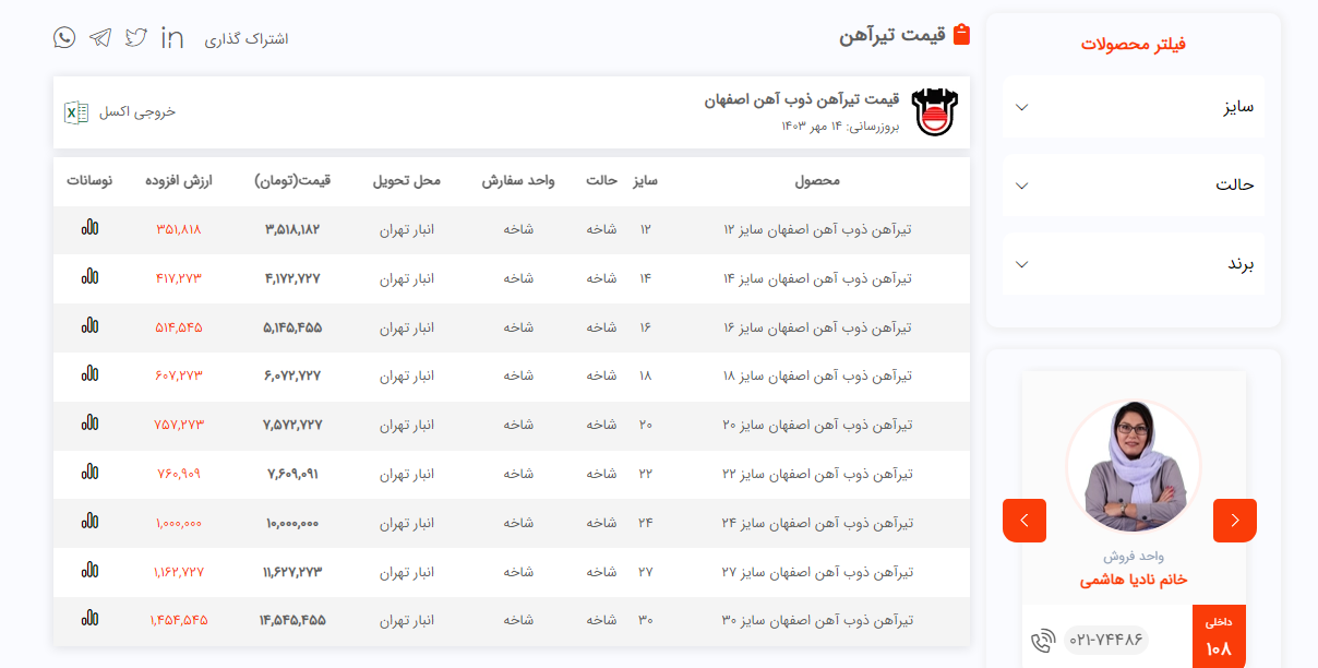 اعلام موجودی تیرآهن فولاد سل