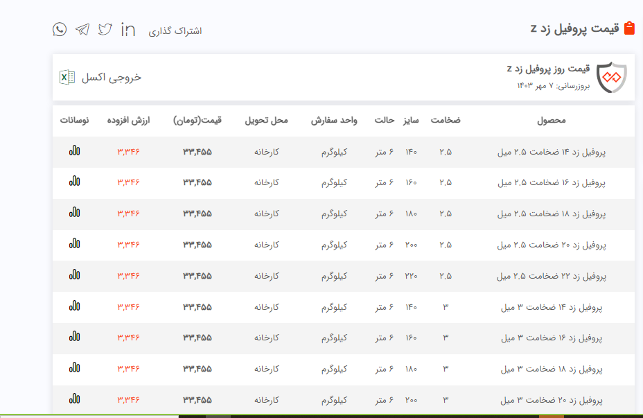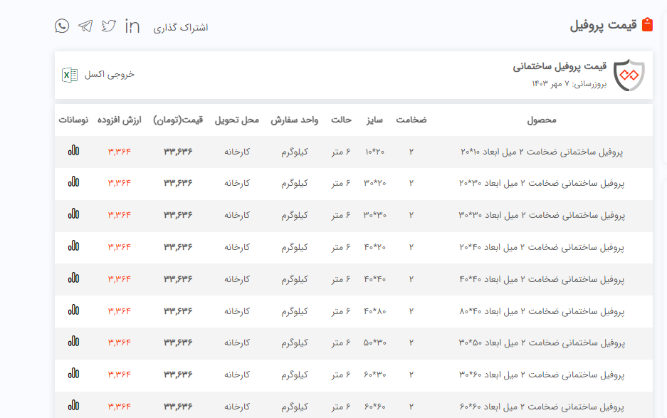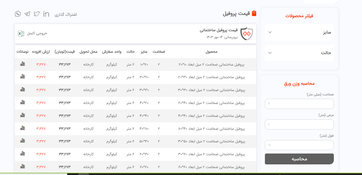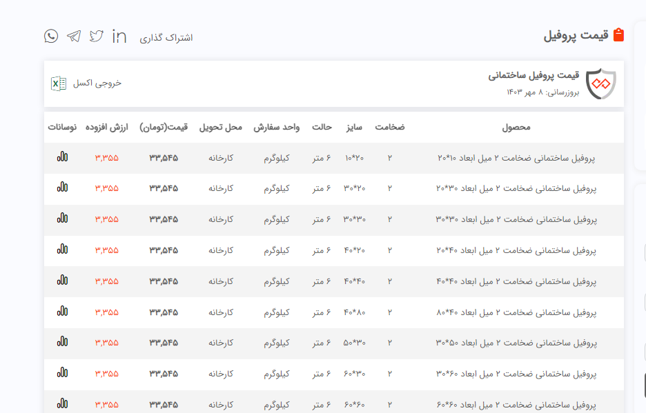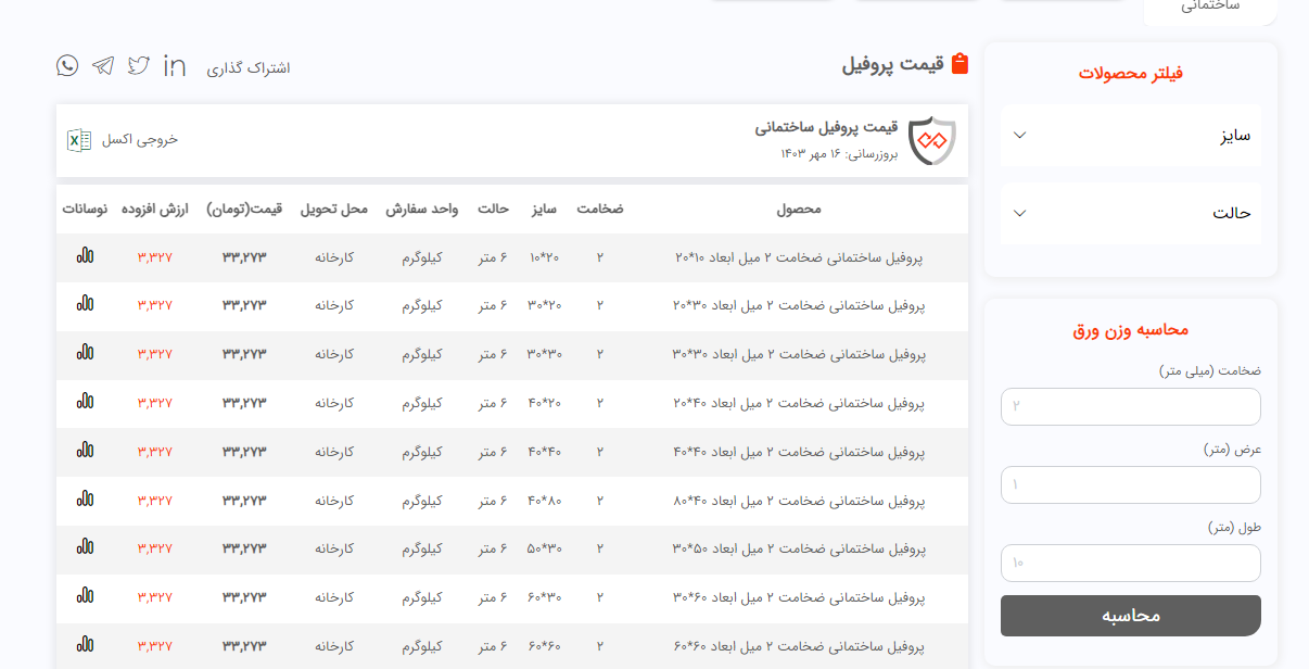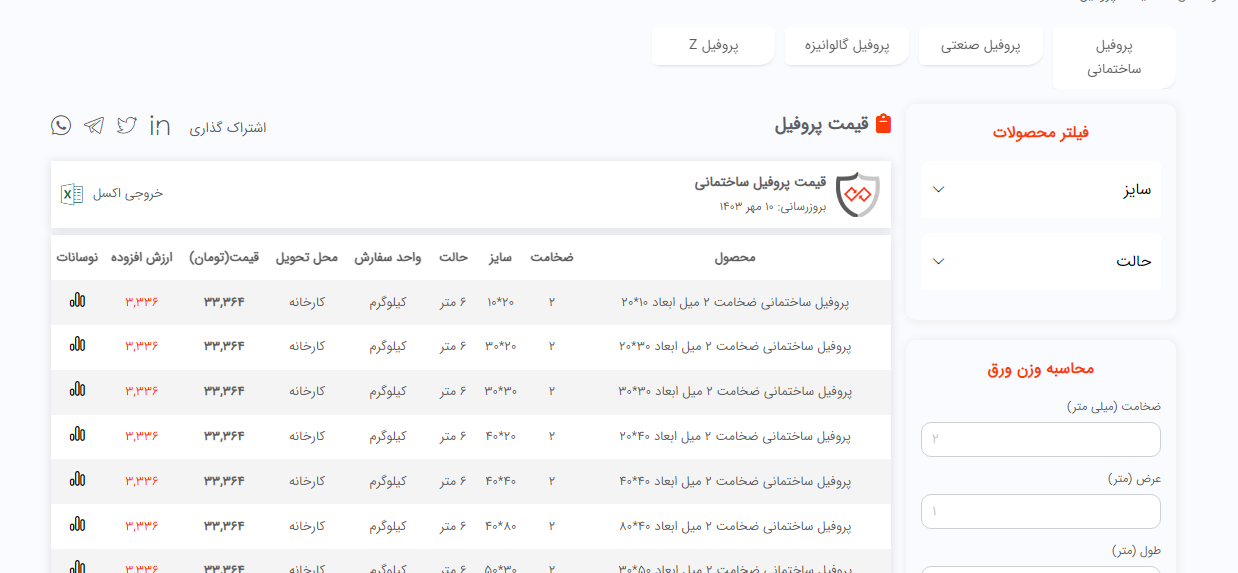 اعلام موجودی پروفیل فولاد سل