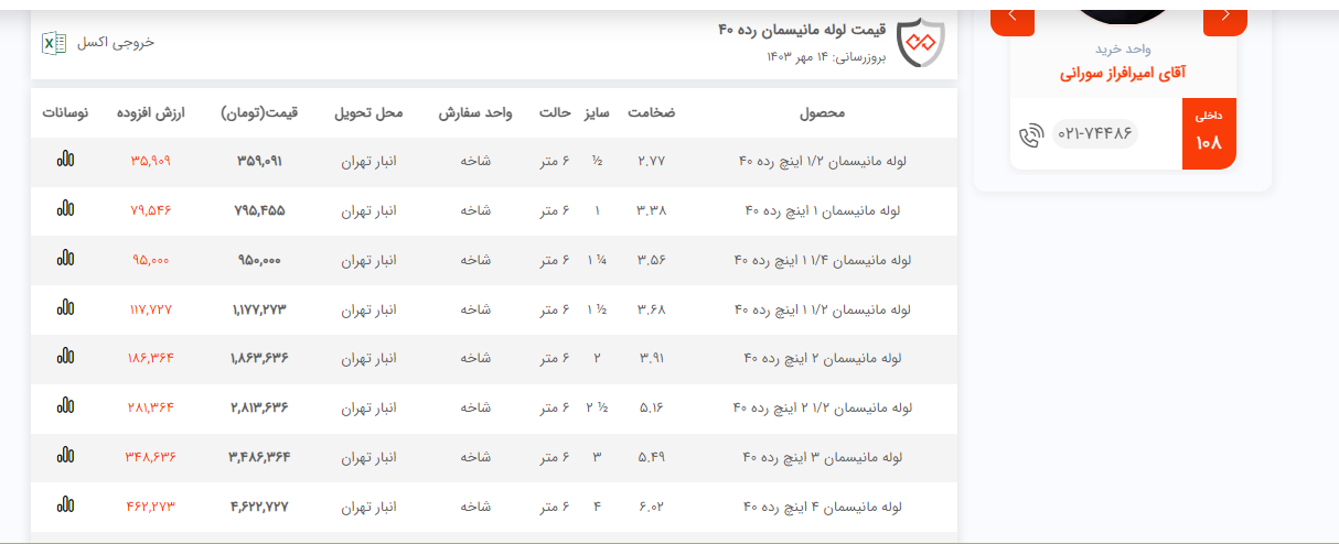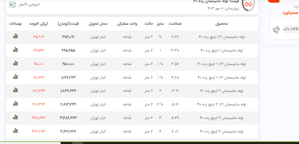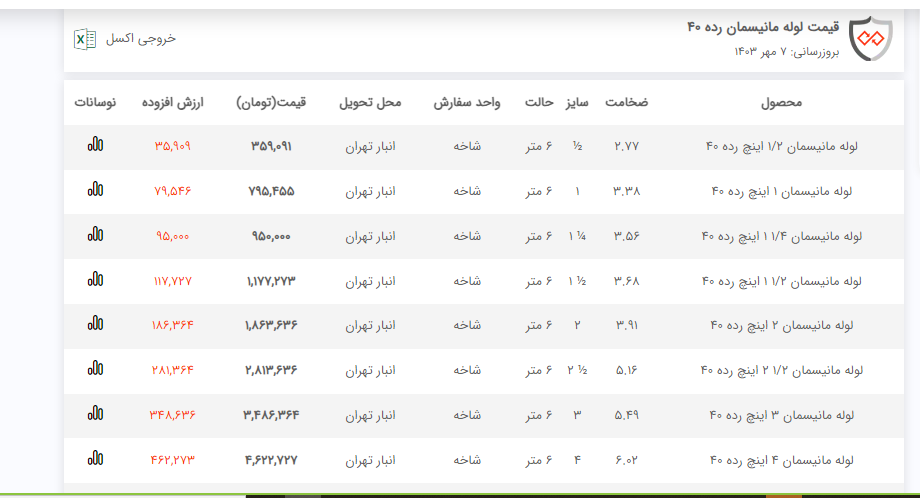 اعلام موجودی لوله مانیسمان فولاد سل