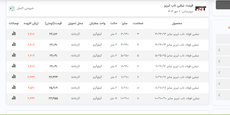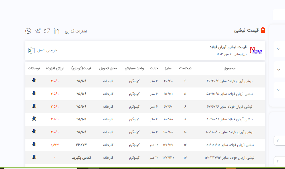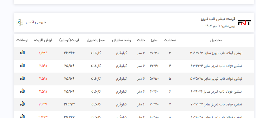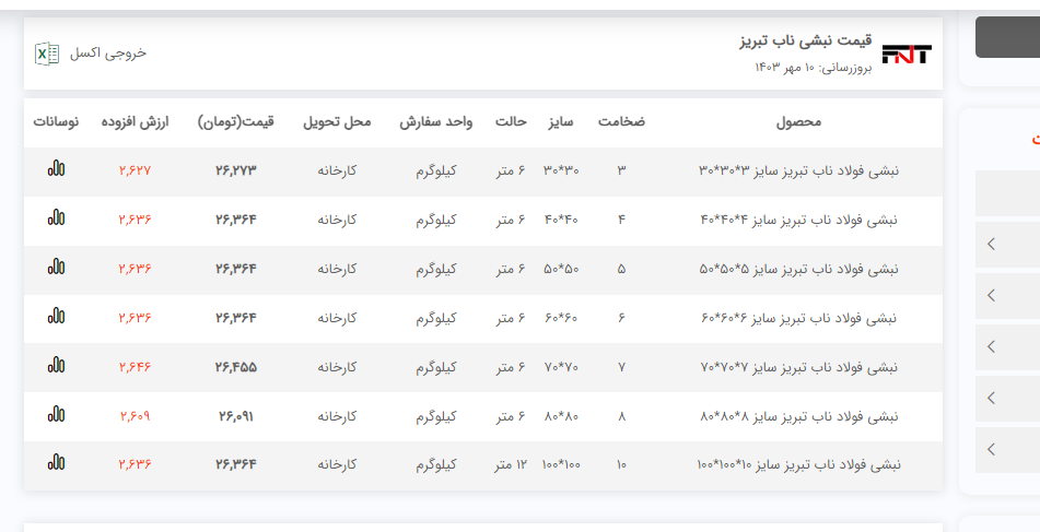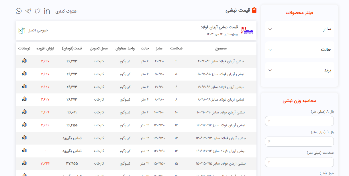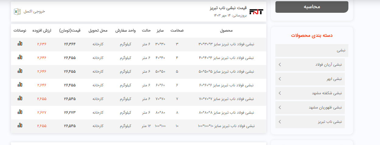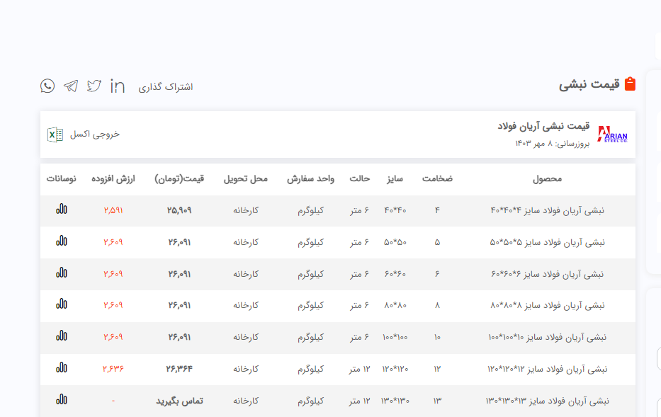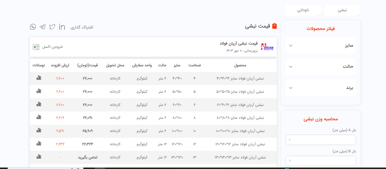 اعلام موجودی نبشی فولاد سل