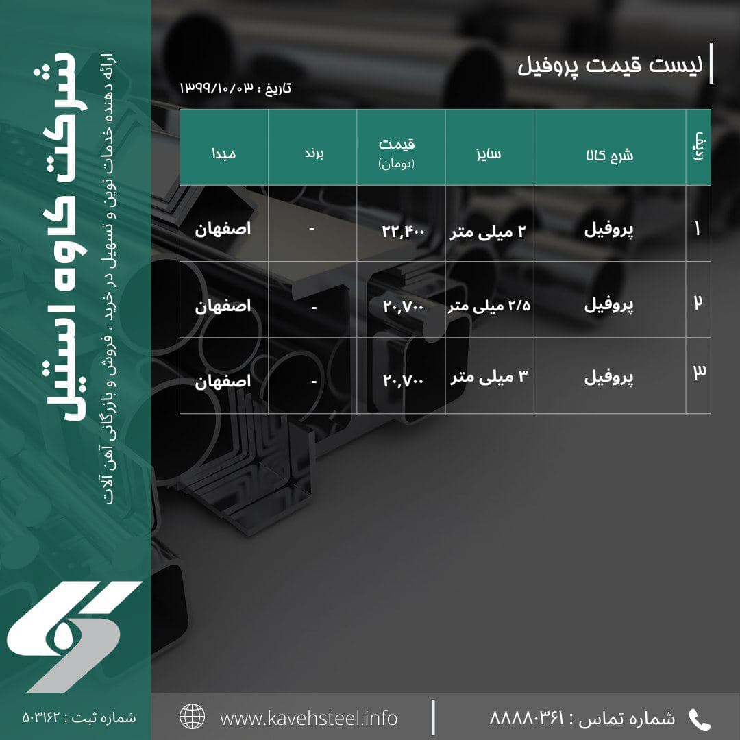 [ Photo ] 📌لیست قیمت #پروفیل (اصفهان) 🗓تاریخ : ۱۳۹۹/۱۰/۰۳ شماره های تماس : 📞 02188880361 📞02188782852 @steel_kaveh