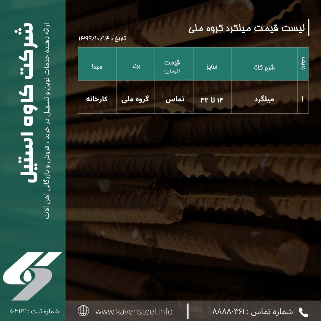 [ Photo ] 📌لیست قیمت #میلگرد(قائم) - کارخانه 🗓تاریخ : ۱۳۹۹/۱۰/۱۳ شماره های تماس : 📞 02188880361 📞02188780310 @steel_kaveh