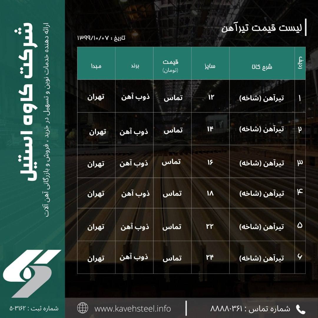 [ Photo ] 📌لیست قیمت #تیرآهن (ذوب آهن) - تهران 🗓تاریخ : ۱۳۹۹/۱۰/۰۷ شماره های تماس : 📞 02188880361 📞02188780310 @steel_kaveh