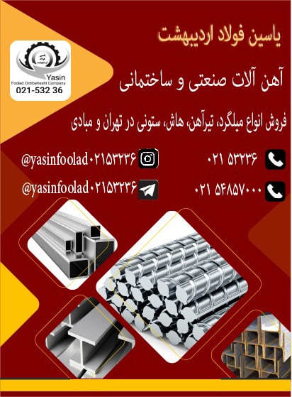 #یاسین_فولاد_اردیبهشت ✅تامین انواع آهن آلات صنعتی و ساختمانی در تهران و مبادی 🔹تیرآهن 🔸میلگرد 🔹هاش 🔸ستونی ☎️02153236 ☎️02154857000 🆔https://t.me/ya ...