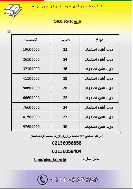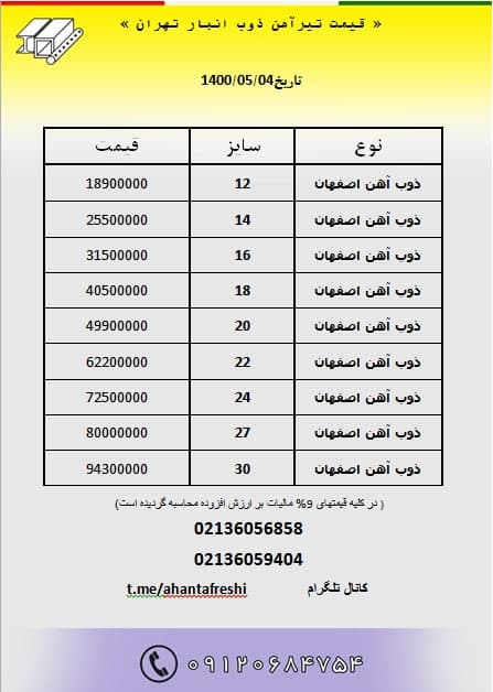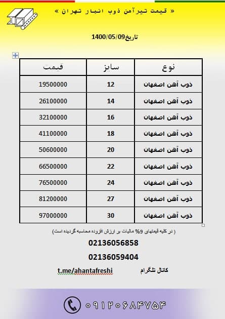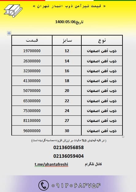 قیمت #تیرآهن_ذوب انبار تهران باتائید ✅قیمت نهایی هنگام خرید ۳۶۰۵۶۸۵۸ ۳۶۰۵۹۴۰۴ ۰۹۱۲۰ ...