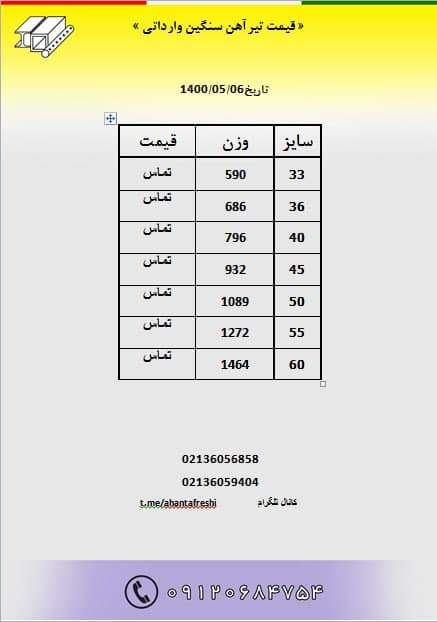 قیمت #تیرآهن_سنگین وارداتی انبار تهران قیمت به صورت تلفنی ۰۲۱_۳۶۰۵۶۸۵۸ ۰۲۱_۳۶۰ ...