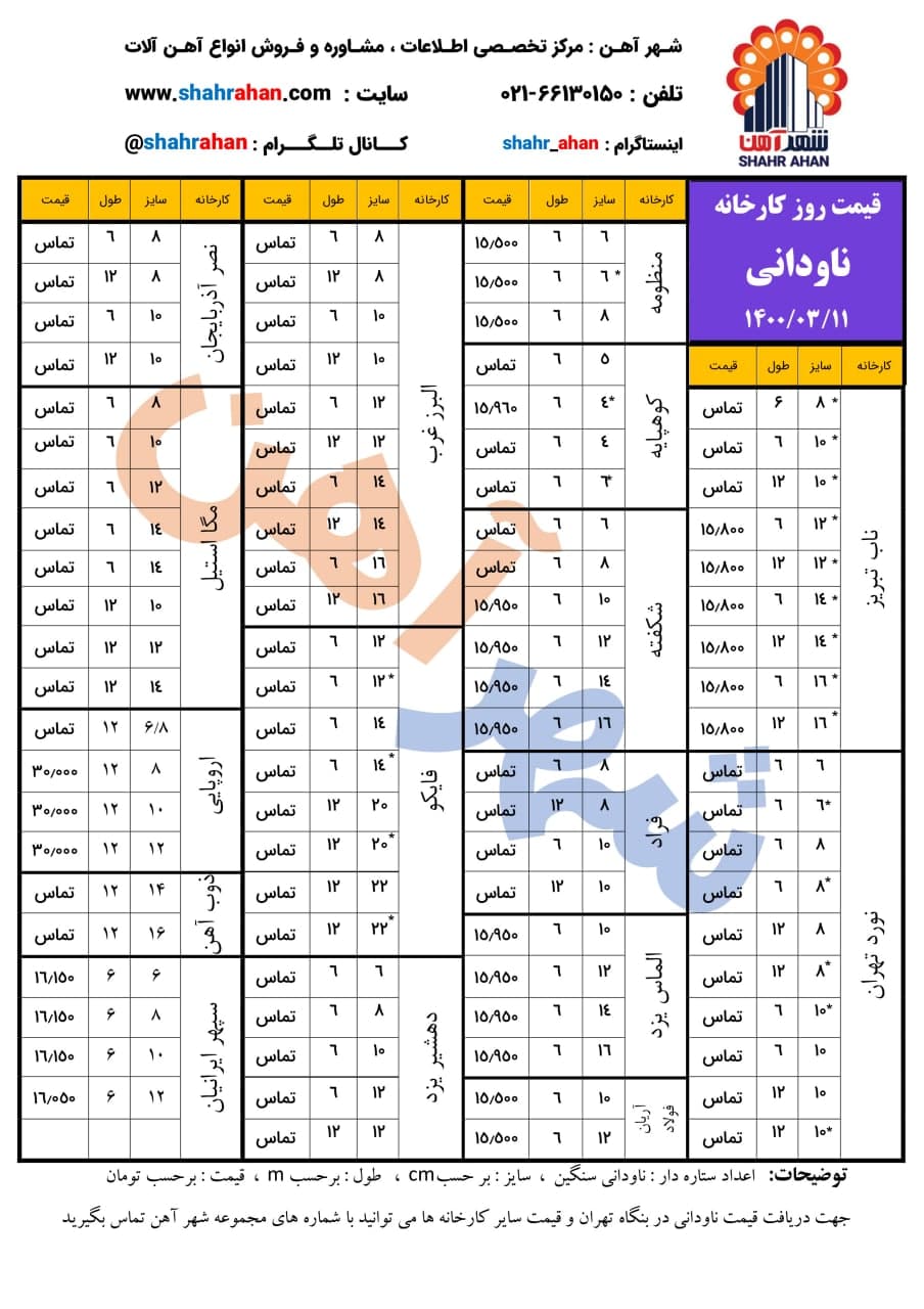 #قیمت_ناودانی در کارخانه 📅‌ 11 خرداد 1400 shahrahan@ 🔸مشاهده قیمت به روز کلیه کارخانجات 👇 www.shahrahan.com 🌍آدرس مجموعه شهرآهن 👇 https://goo.gl/maps ...