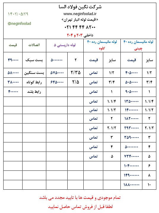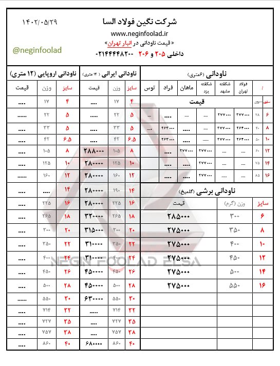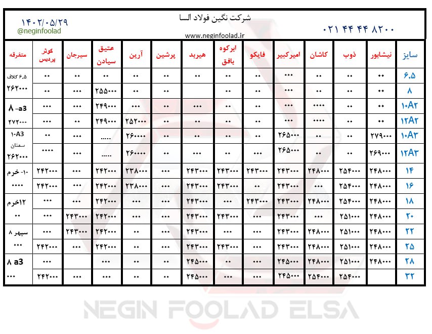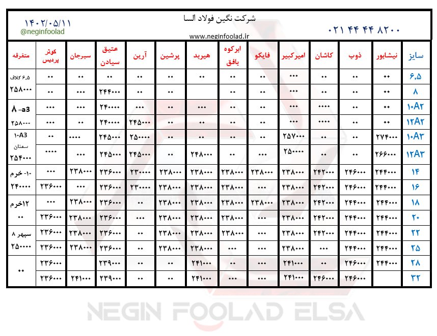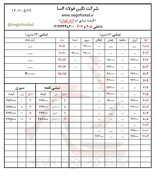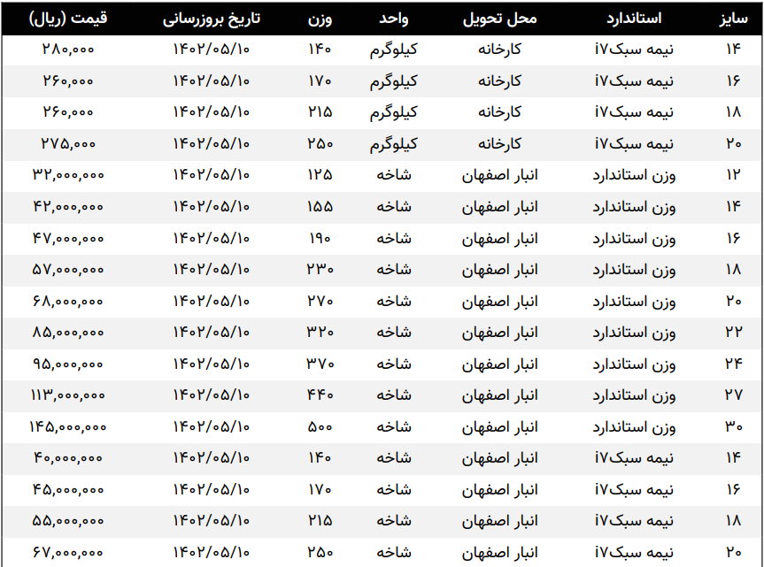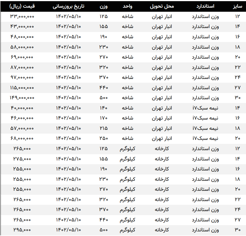 صورت بار #تیرآهن_سنگین #تیرآهن_33. 60000 #تیرآهن_36. 62000 #تیرآهن_40. 72000 #تیرآهن_45. 62000 #تیرآهن_50. 59000 #تیرآهن_60. 75000 ...