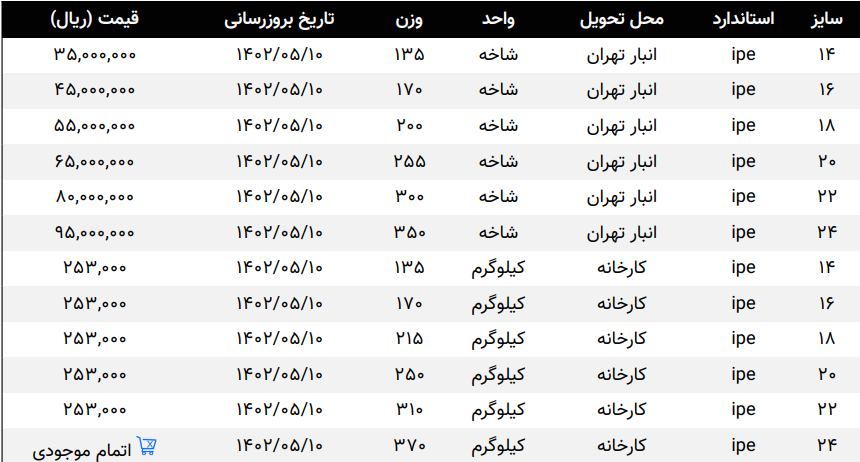 اعلام موجودی تیرآهن (IPE)