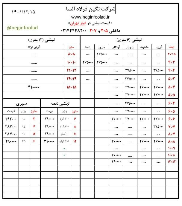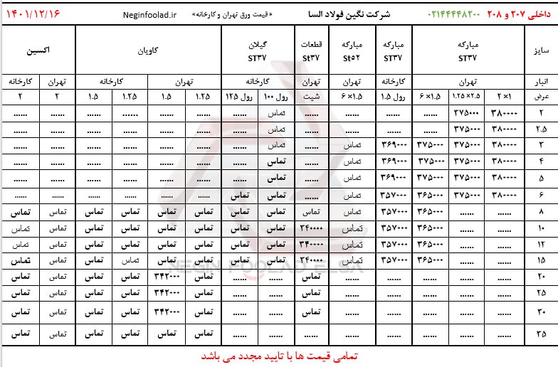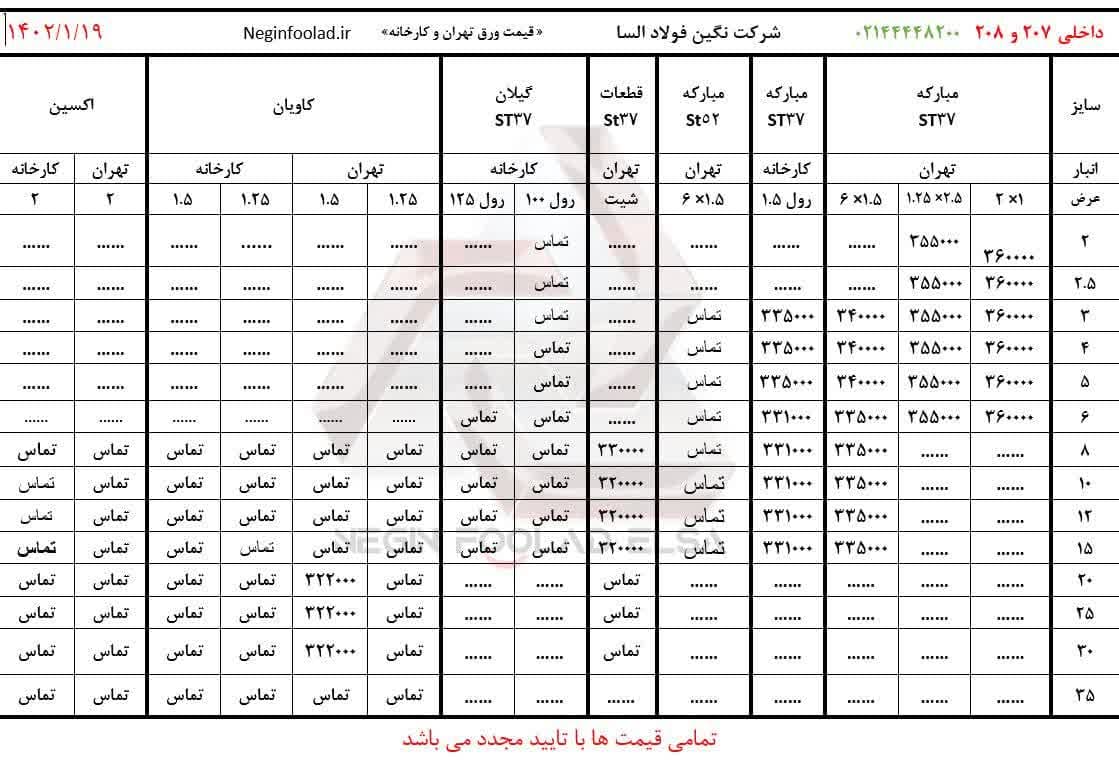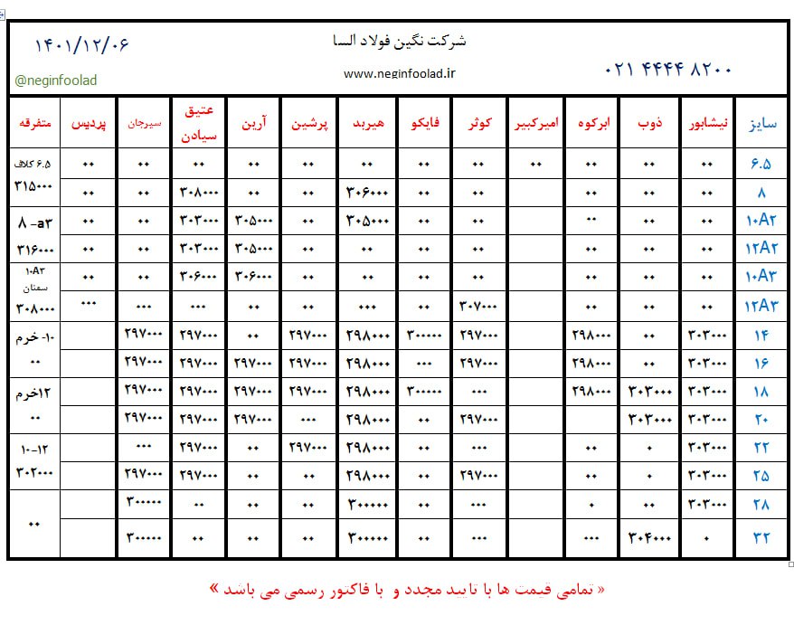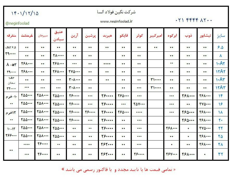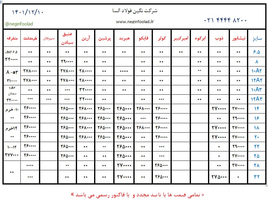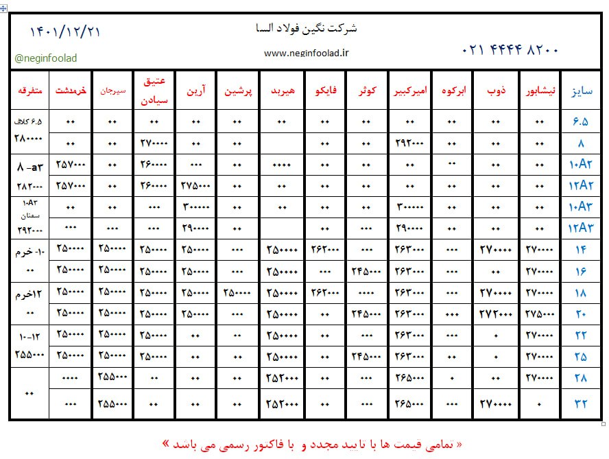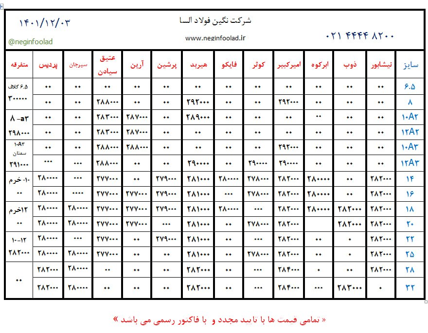 ⬅️شرکت #نگین_فولاد_السا📌نیشابور در انبار تهران ۲۷۵۰۰ 📌میلگرد متفرقه ۲۶۰۰۰ 📌پروفیل ۲/۵ اهوازی انبار تهران ۴۰۰۰۰ ✔️فروش فقط با پول واریزی انجام میگیرد ✅فروش با ف ...