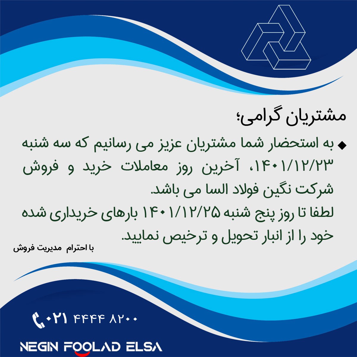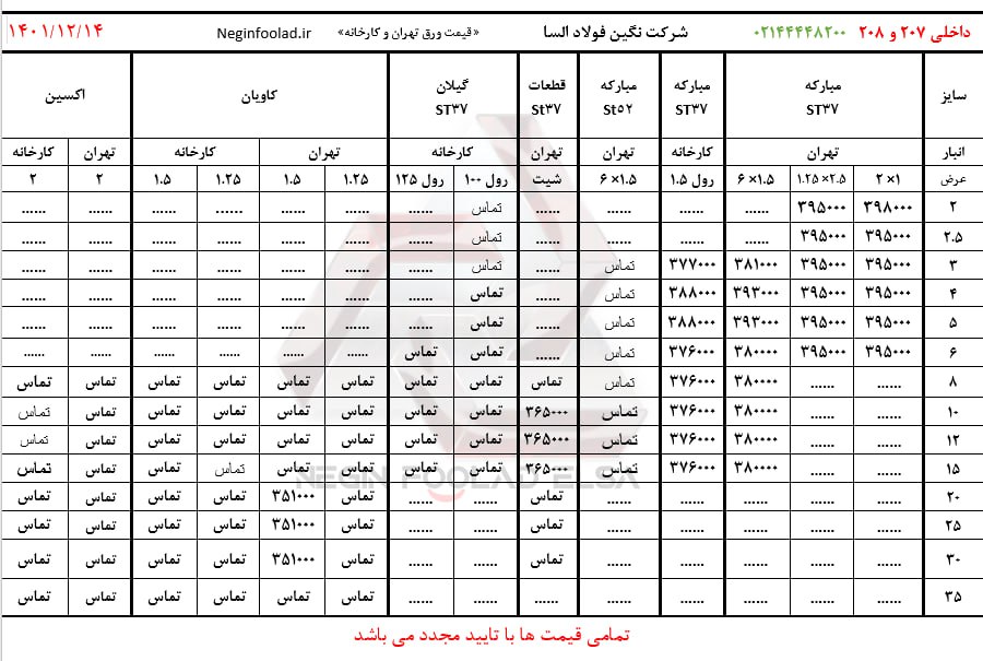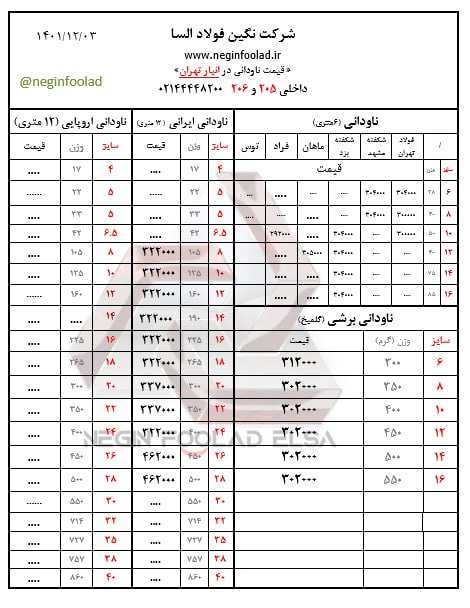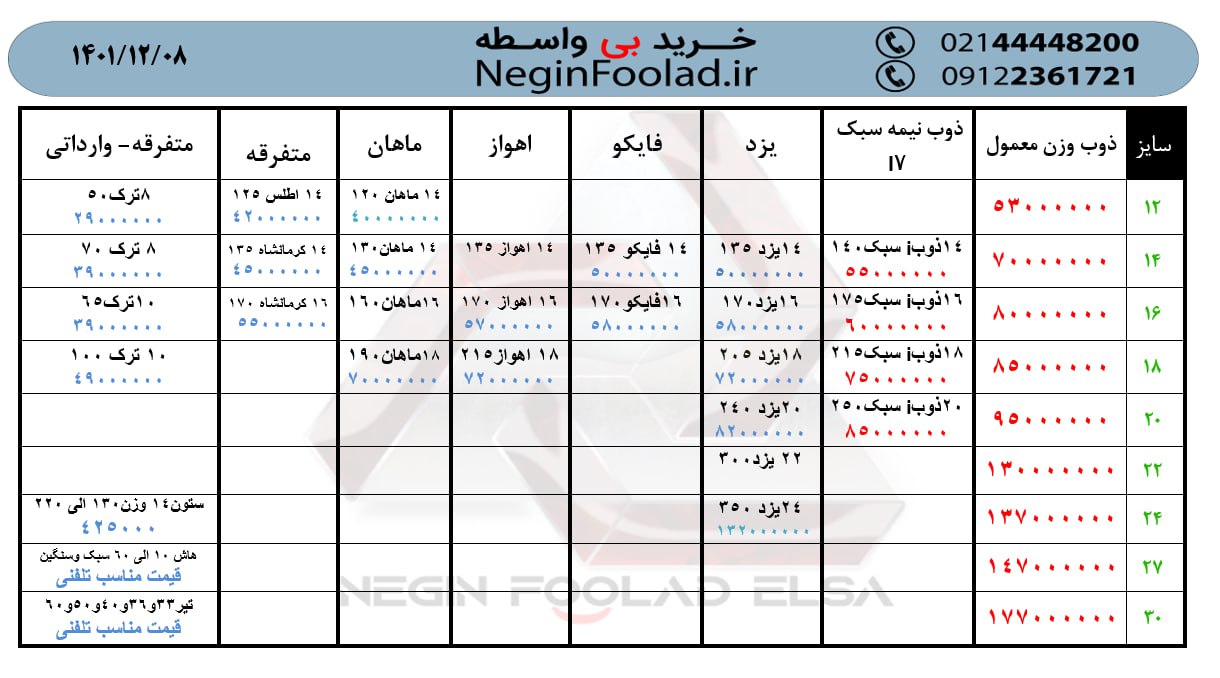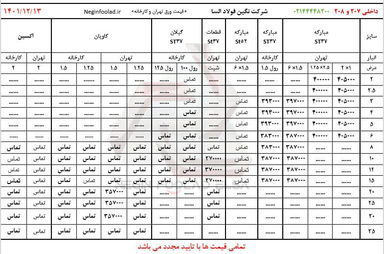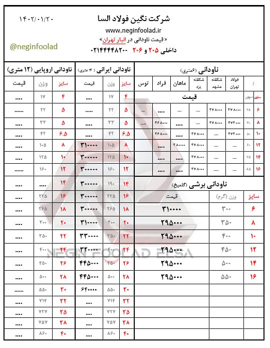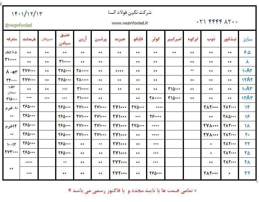 ⬅️شرکت #نگین_فولاد_السا📌نیشابور در انبار تهران ۲۷۵۰۰ 📌میلگرد متفرقه ۲۶۰۰۰ 📌پروفیل ۲/۵ اهوازی انبار تهران ۴۰۰۰۰ ✔️فروش فقط با پول واریزی انجام میگیرد ✅فروش با ف ...