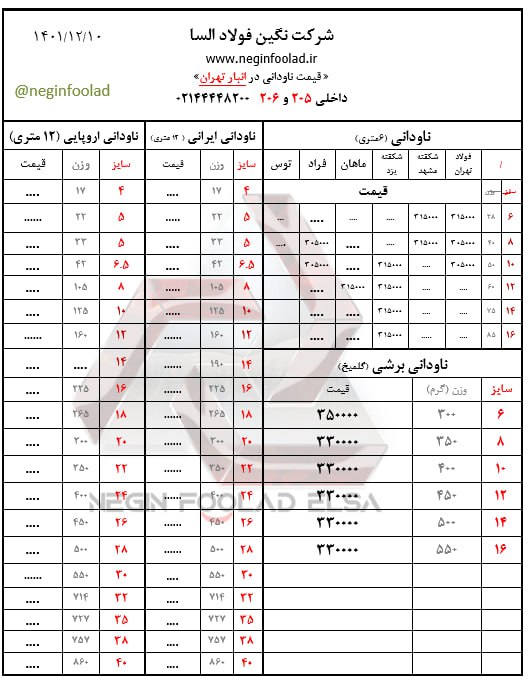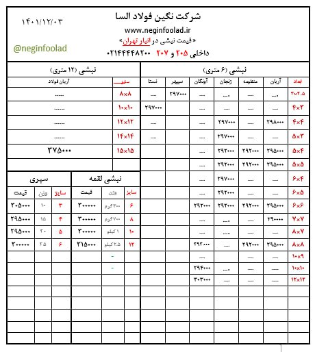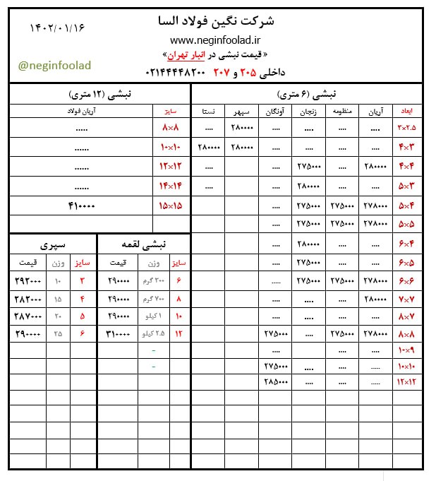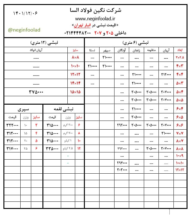 ⬅️شرکت #نگین_فولاد_السا💠فروش انواع مقاطع فولادی 🔸تیرآهن ساختمانی و صنعتی 🔸هاش سبک و سنگین 🔸نبشی و ناودانی 🔸میلگرد آجدار و ساده 🔸ورق سیاه، گالوانیزه و روغنی 🔸انو ...