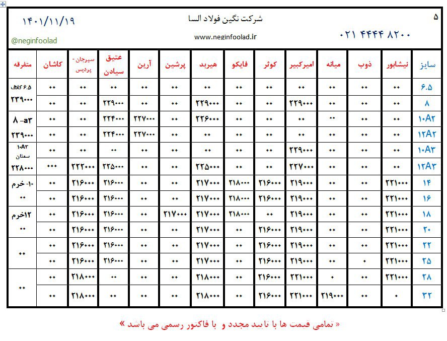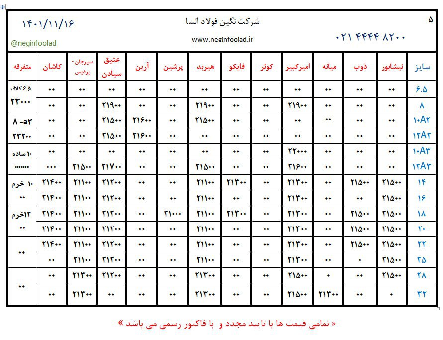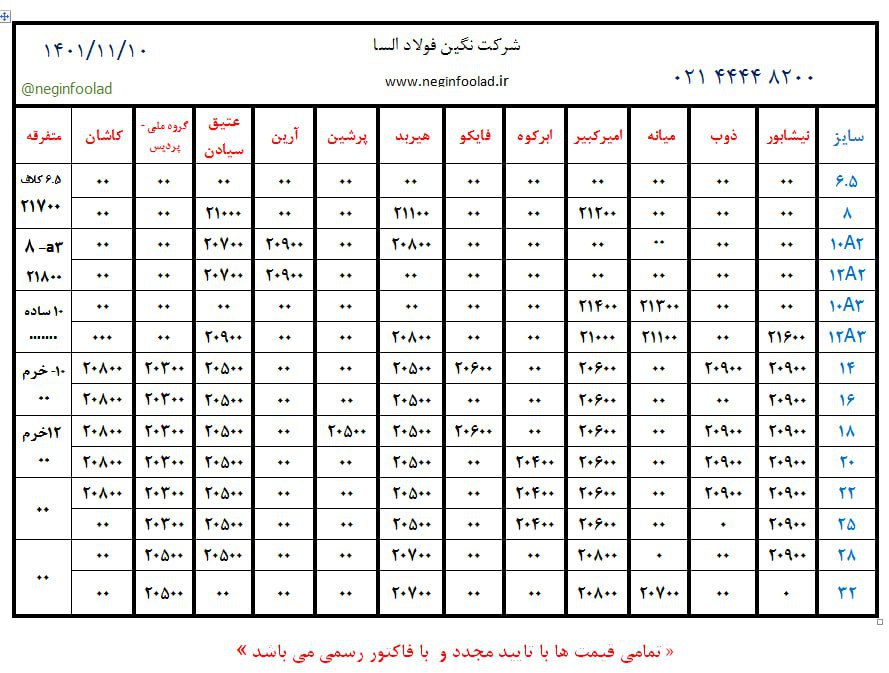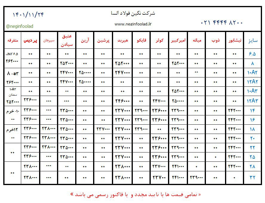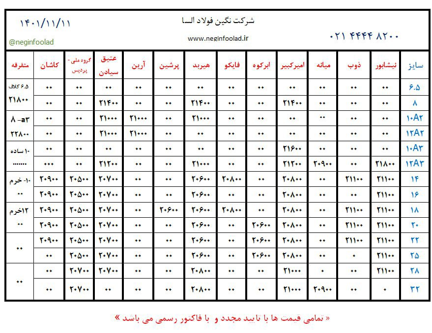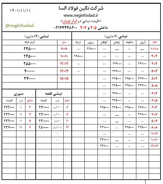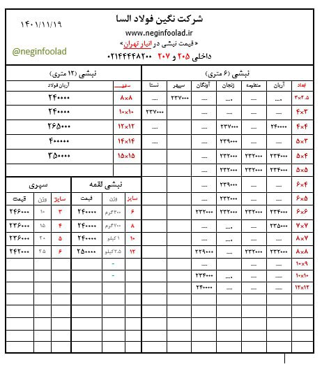 ⬅️شرکت #نگین_فولاد_السا💠فروش انواع مقاطع فولادی 🔸تیرآهن ساختمانی و صنعتی 🔸هاش سبک و سنگین 🔸نبشی و ناودانی 🔸میلگرد آجدار و ساده 🔸ورق سیاه، گالوانیزه و روغنی 🔸انو ...