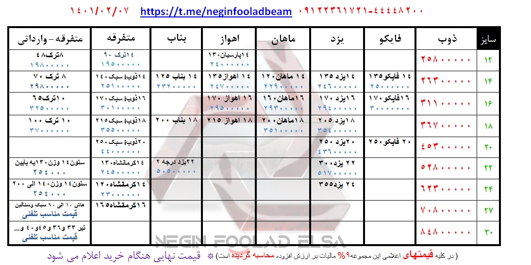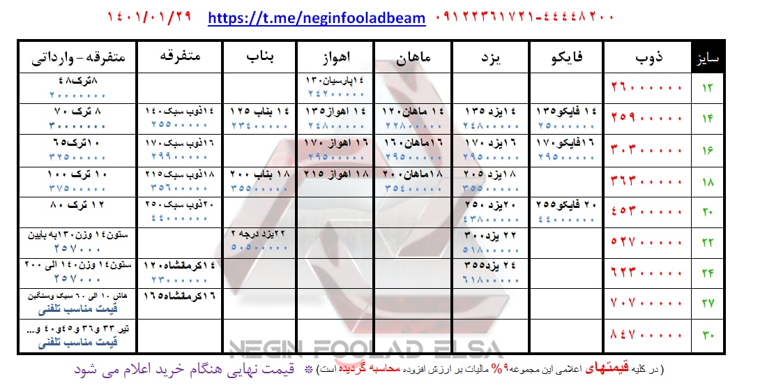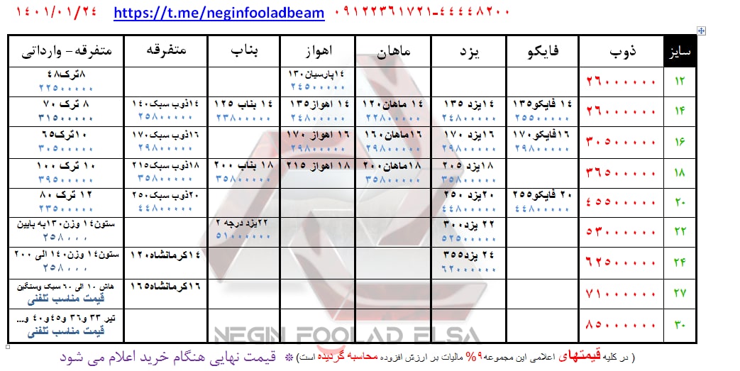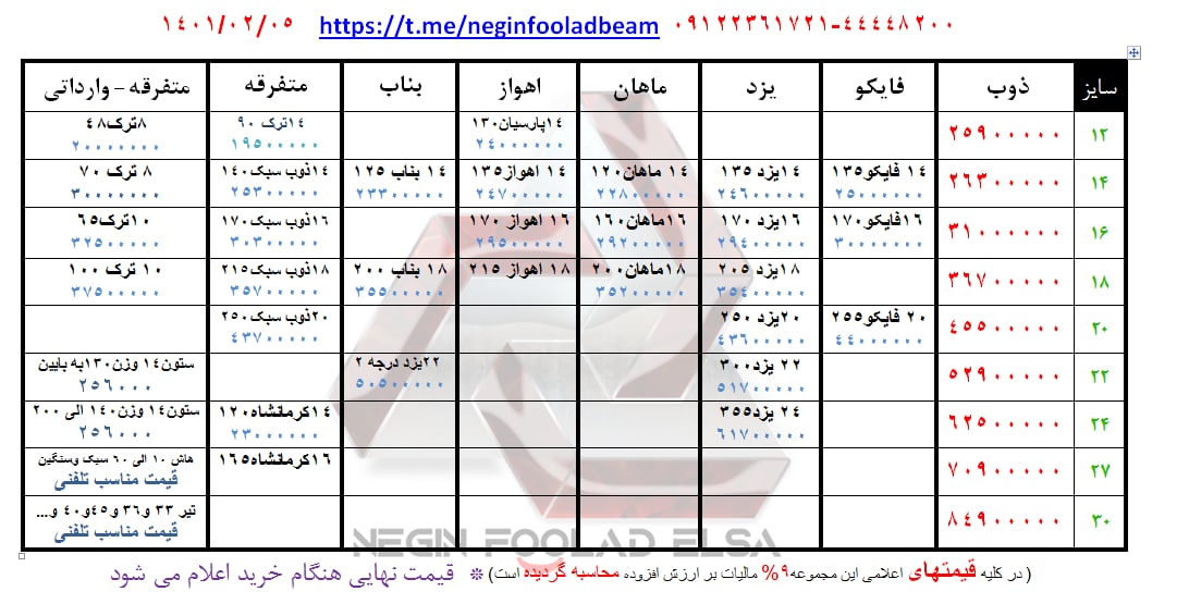 ⬅️شرکت #نگین_فولاد_السا 💠فروش انواع مقاطع فولادی 🔸تیرآهن ساختمانی و صنعتی 🔸هاش سبک و سنگین 🔸نبشی و ناودانی 🔸میلگرد آجدار و ساده 🔸ورق سیاه، گالوانیزه و روغنی 🔸ا ...
