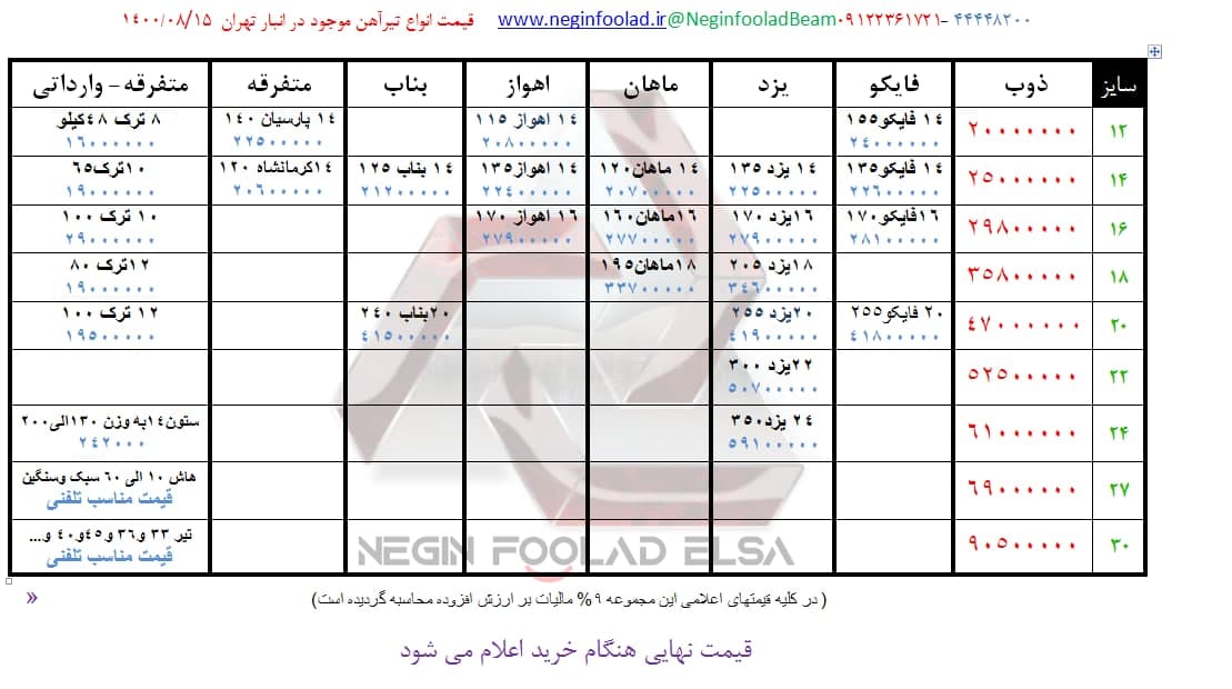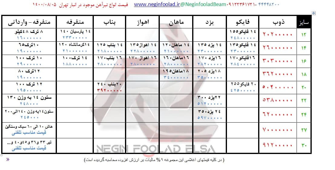 ⬅️شرکت #نگین_فولاد_السا 💠فروش انواع مقاطع فولادی 🔸تیرآهن ساختمانی و صنعتی 🔸هاش سبک و سنگین 🔸نبشی و ناودانی 🔸میلگرد آجدار و ساده 🔸ورق سیاه، گالوانیزه و روغنی 🔸ا ...