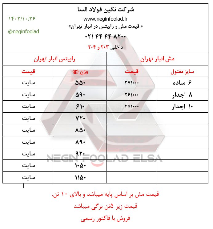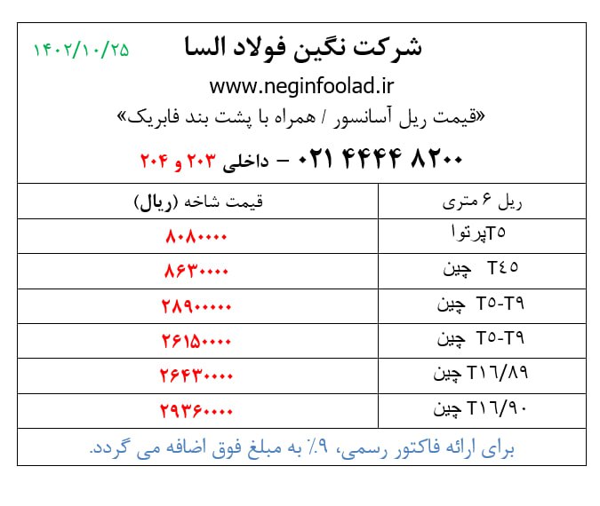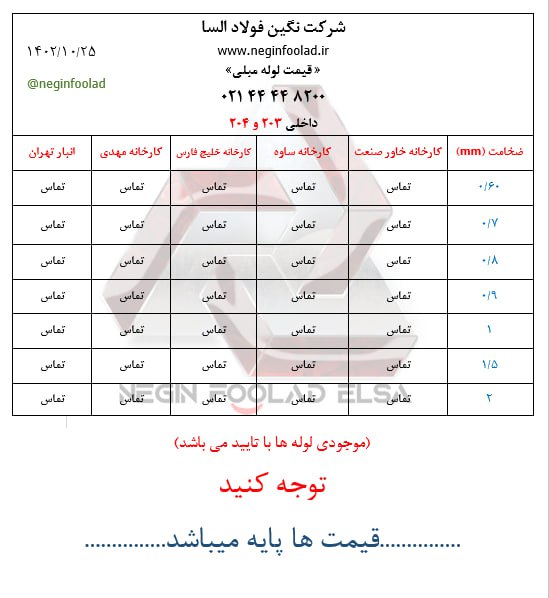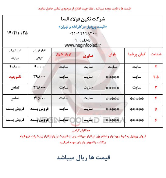 باسلام قیمتهای امروز تیرآهن اعلام شد همکاران محترم میتوانند جهت مشاهده قیمت لحظه ای انواع تیر آهن در انبار تهران به سایت نگین فولاد السا مراجعه نمایند د ...