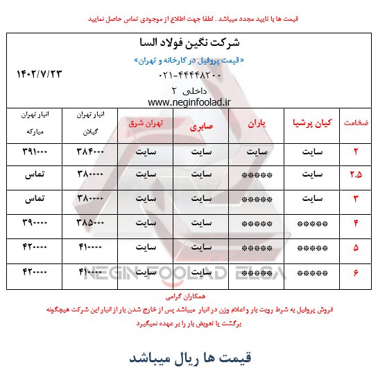 ⬅️شمال کشور ⭕️فایکو ساری—————-——-🔻——-——-- 24100 ⭕️امیرکبیر رشت ——————🔻——-——--23800 ⭕️آناهیتا گیلان—- —- -—- ——-↕️—————25000 ⭕️کاسپین رشت ...