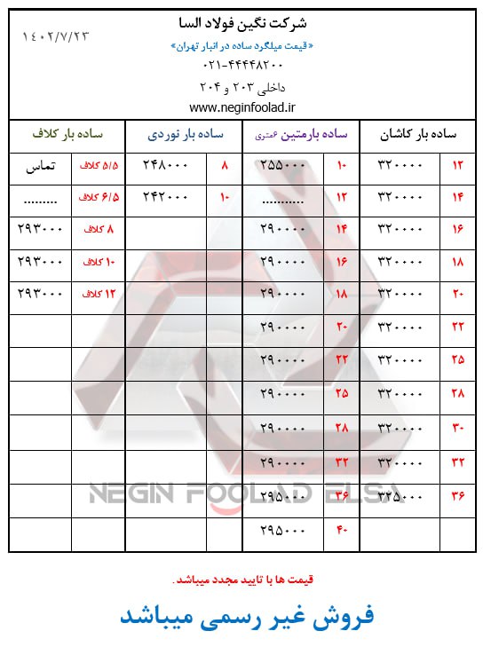کارخانجات شرقی کشور ⭕️جهان فولاد سیرجان کرمان— ———🔻———--23600 ⭕️حدید سیرجان— ———-—-—↕️———-—25100 ⭕️ذوب نورد کرمان—- ————-—-↕️———-—24200 ⭕️بردسیر ...