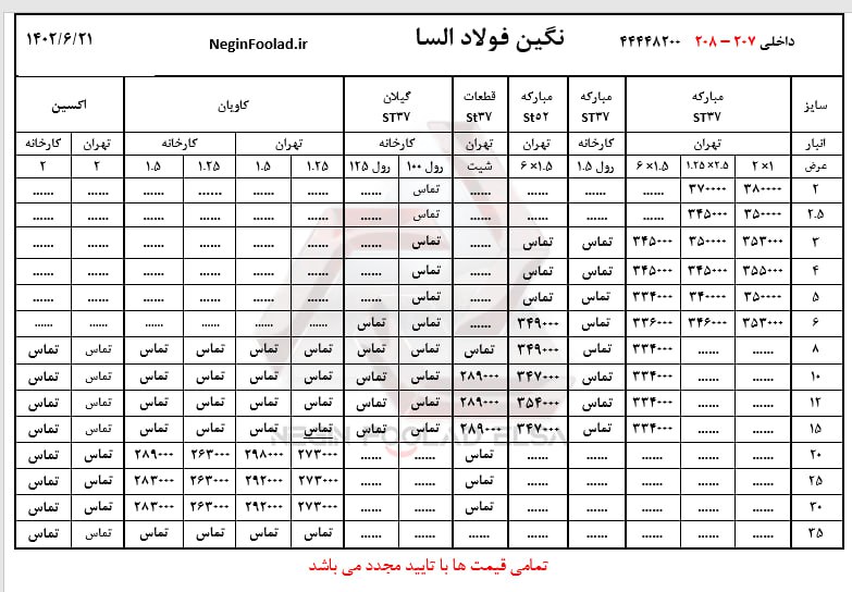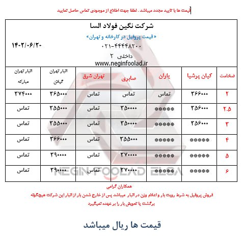 ⬅️کارخانجات مرکزی کشور ⭕️سپهر—————-————↕️————-—25900 ⭕️رادهمدان———————-↕️———-——25795 ⭕️کاوه ساوه———————-↕️—————-24500 ⭕️پرشین قزوین ————-—-↕️————--24300 ...