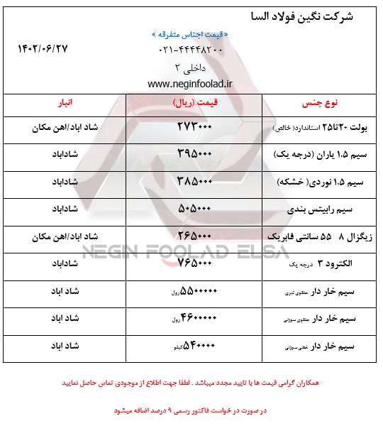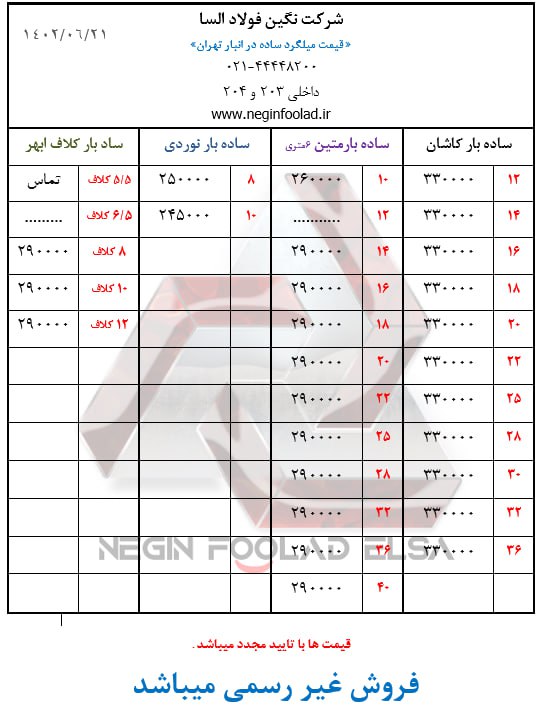 ⬅️کارخانجات شرقی کشور⭕️جهان فولاد سیرجان کرمان— ———↕️———--23900 ⭕️حدید سیرجان— ———-—-—🔺———-—25800 ⭕️ذوب نورد کرمان—- ————-—-🔺———-—23800 ⭕️بردسیر ک ...