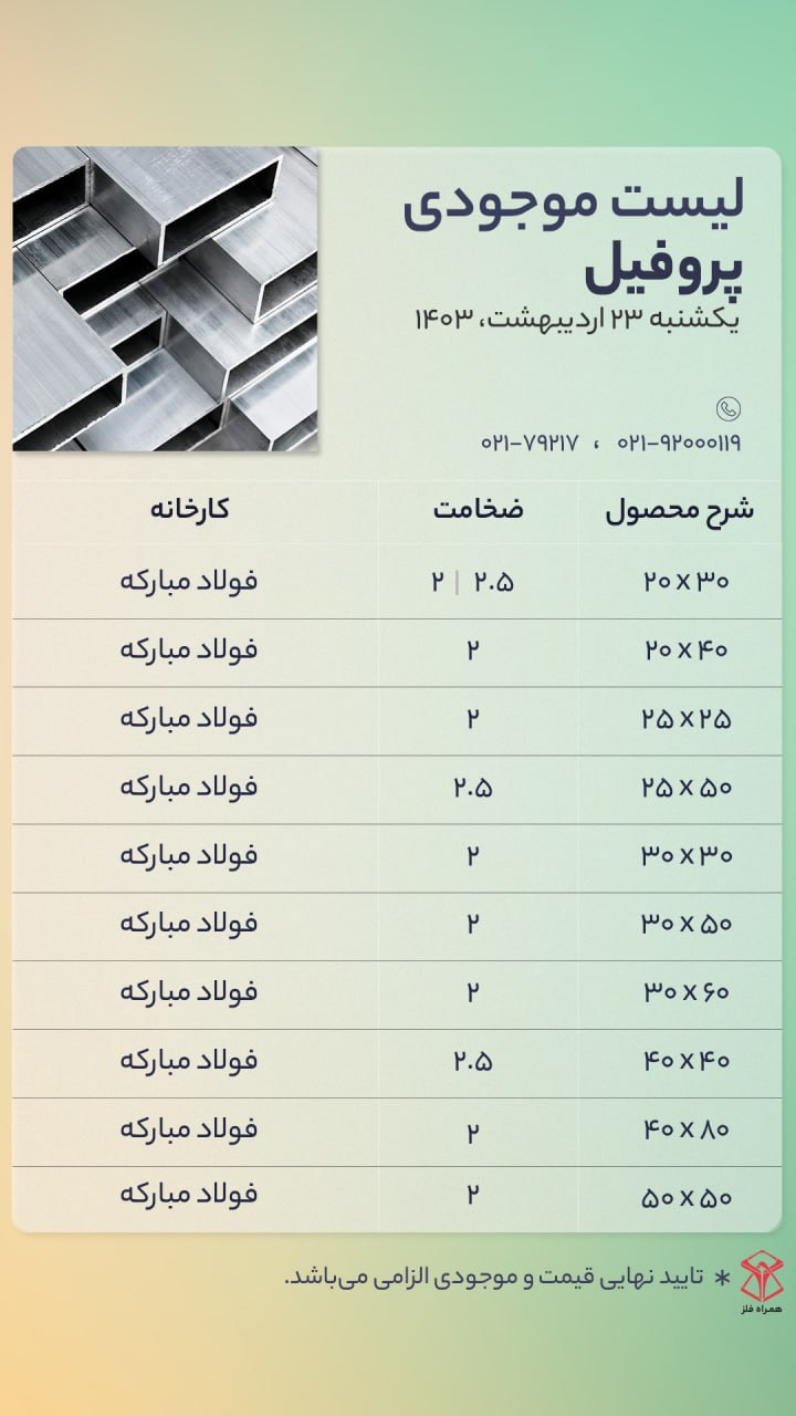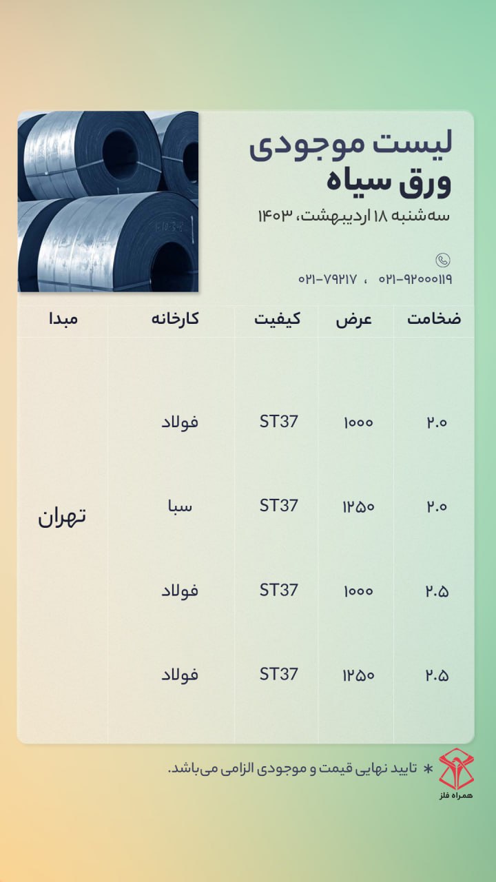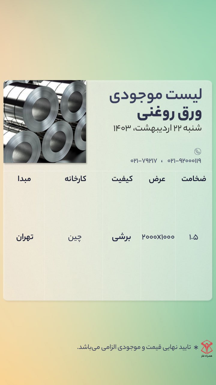 اعلام موجودی ورق گالوانیزه
