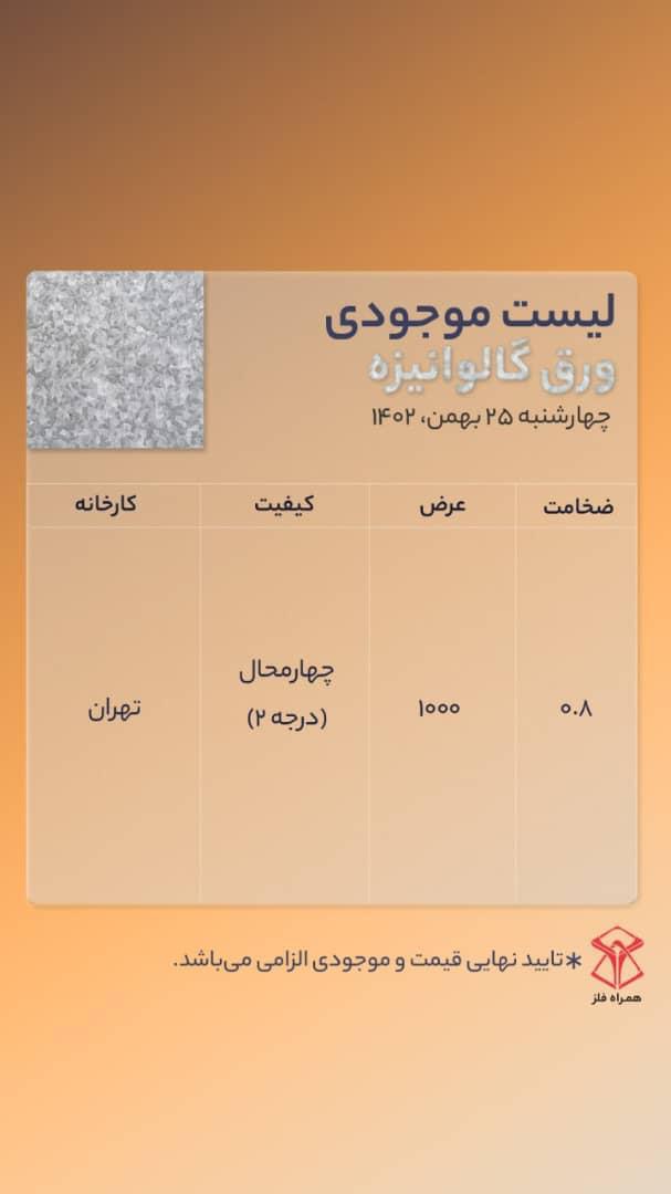 اعلام موجودی ورق گالوانیزه